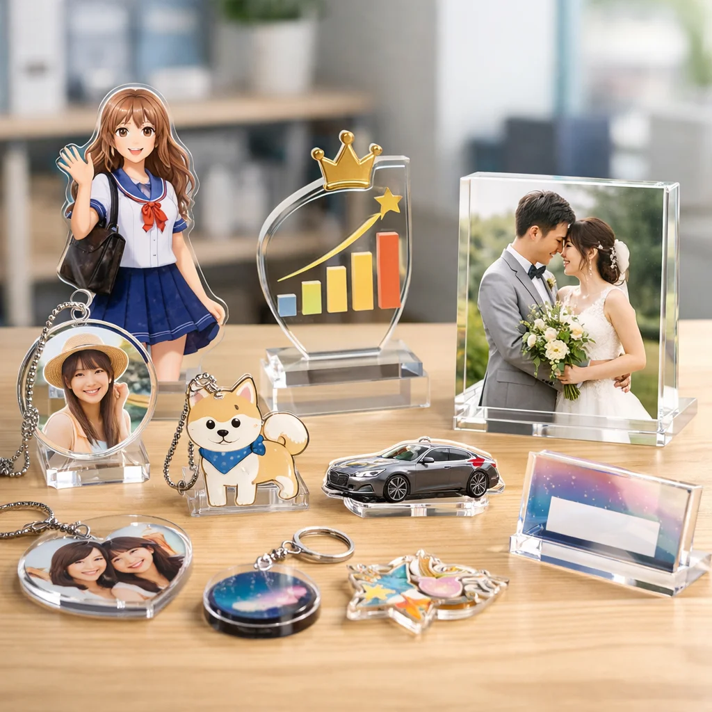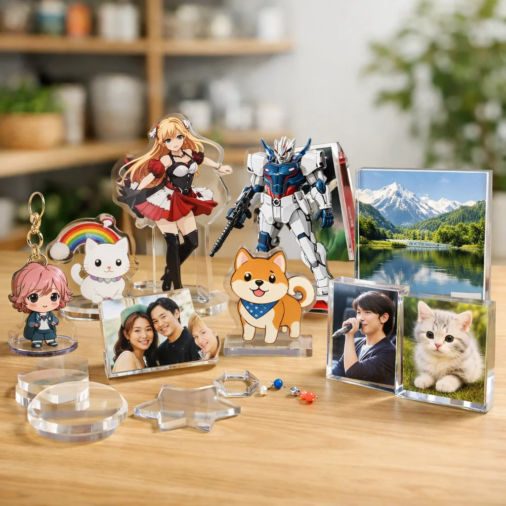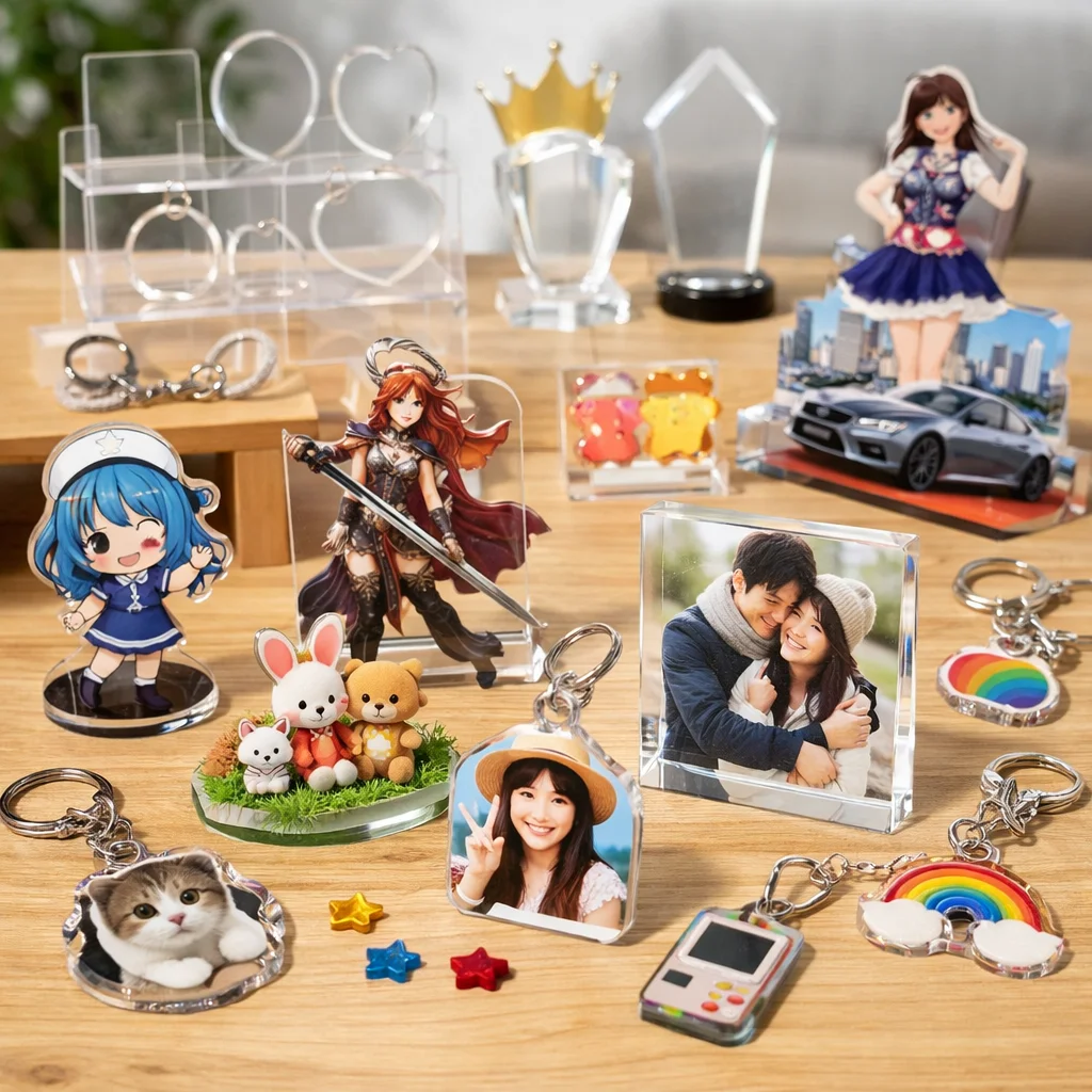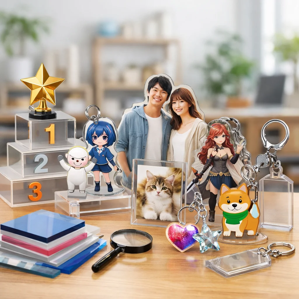 アクリルグッズは、その透明感と高い耐久性から、多様なシーンで活用されています。同人活動、企業のノベルティ、店舗の物販、学校や団体の記念品など、各シーンにおいて選ばれやすいアイテムと成功のポイントを具体的にご紹介します。
