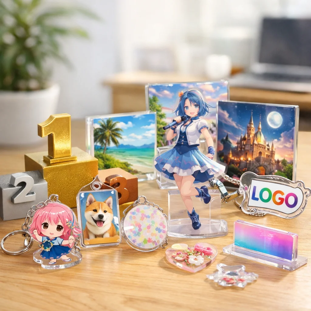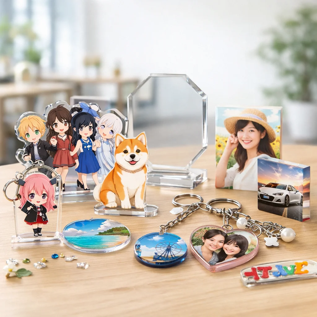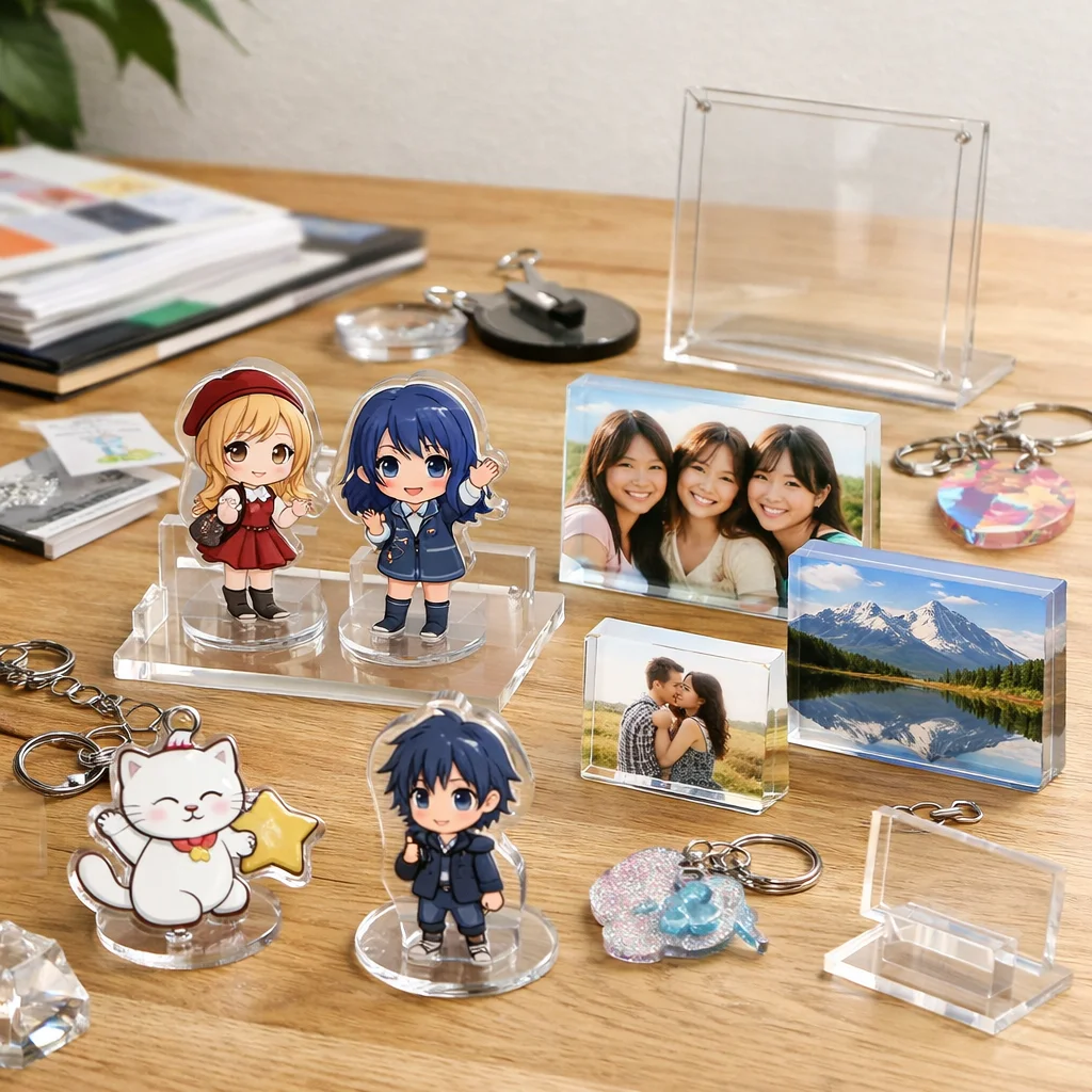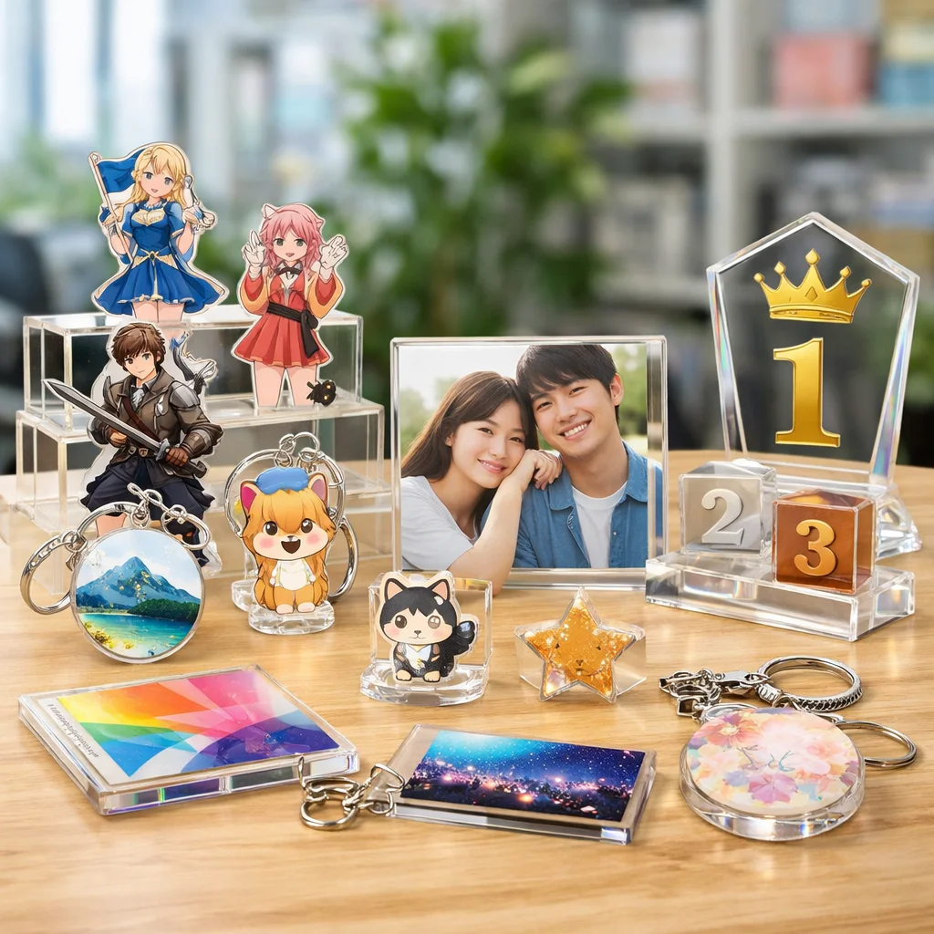 アクリルグッズは、その透明感と高い耐久性から、多様なシーンで活用されています。同人活動、企業のノベルティ、店舗の物販、学校や団体の記念品など、各シーンにおいて選ばれやすいアイテムと成功のポイントを具体的にご紹介します。