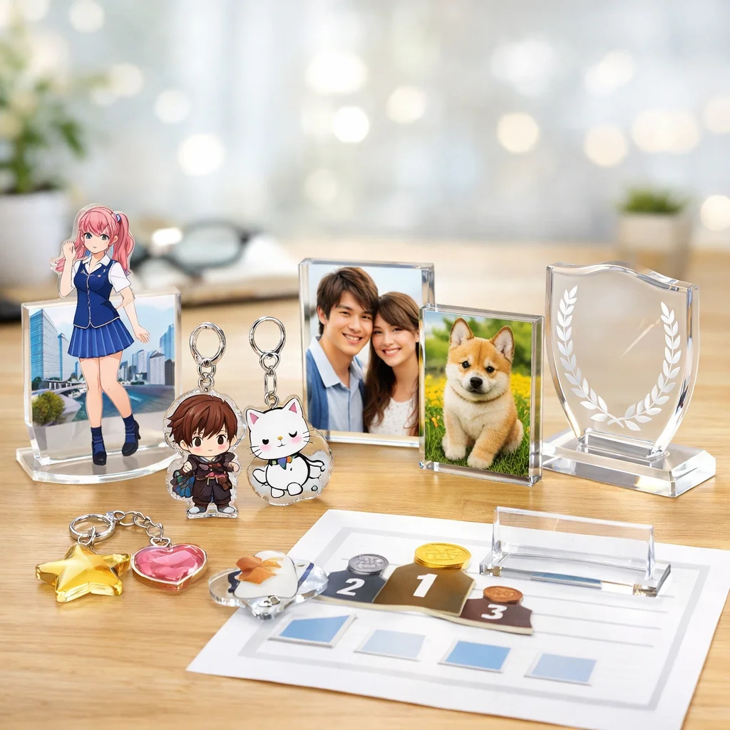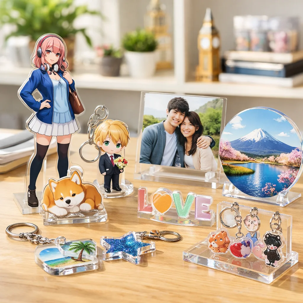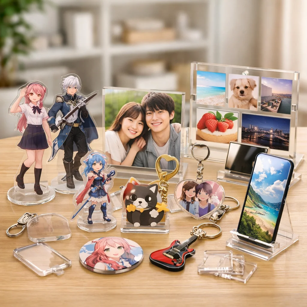 これらの特長により、アクリルグッズは多種多様なアイテムとして利用されています。代表的なアイテムには以下のようなものがあります。