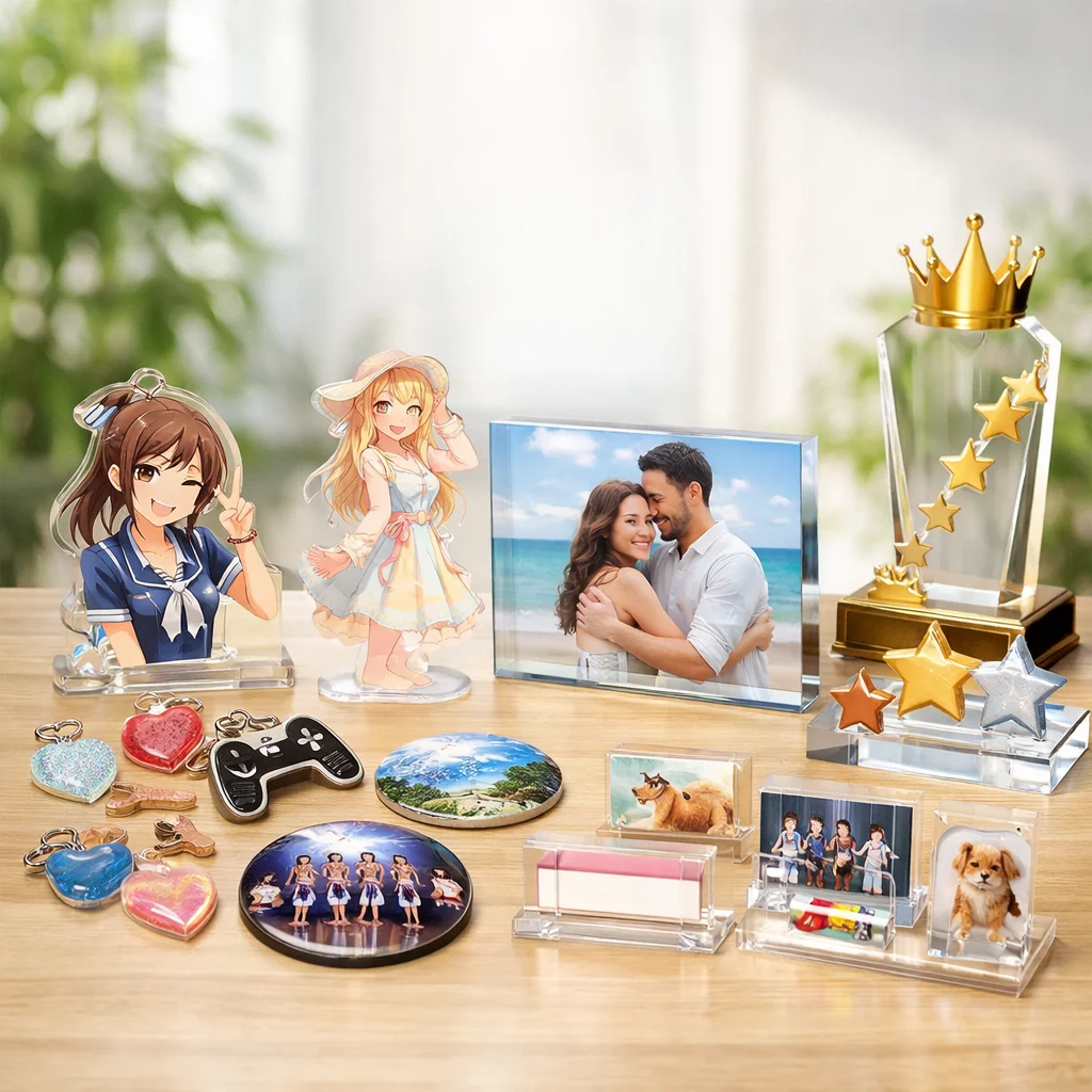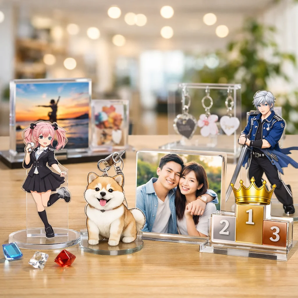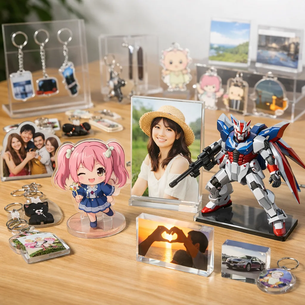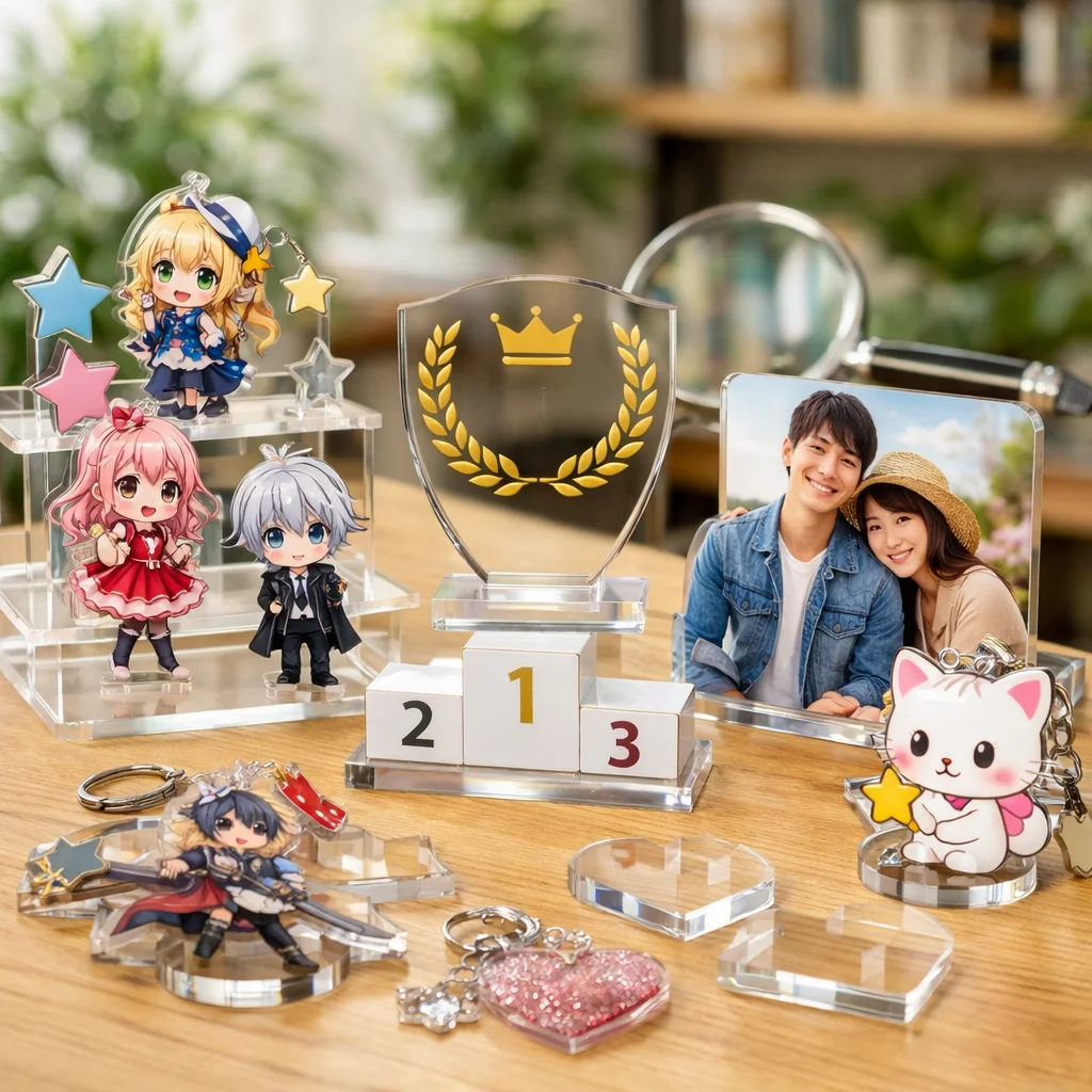 アクリルグッズは多様なデザインと高い加工技術を持っているため、あらゆる目的やシーンにマッチします。特に、個性的なアイテムを作りたい方やプレゼントを探している方には非常に向いています。お気に入りのアクリルグッズを見つけて、その魅力を楽しんでください。