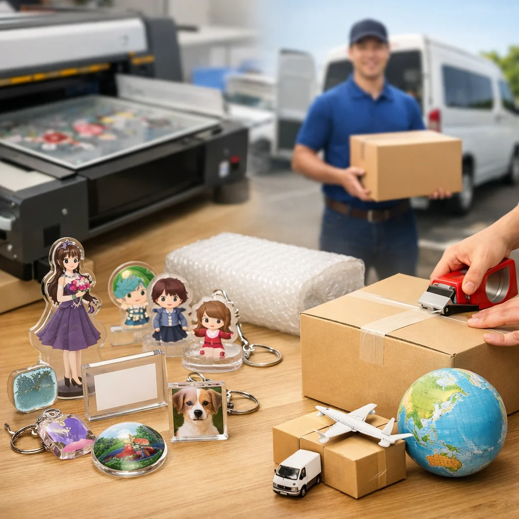 アクリルグッズを製作・販売する際、特に重要なのは、配送の信頼性とスピードです。アクリルグッズはその材質特性から、グッズ自体が壊れやすく、破損のリスクが高いアイテムです。そのため、全国対応で発送可能な業者を選ぶことは、ビジネスの成功に直結します。ここでは、なぜ全国対応の発送業者を選ぶべきなのかについて、具体的な観点から解説します。