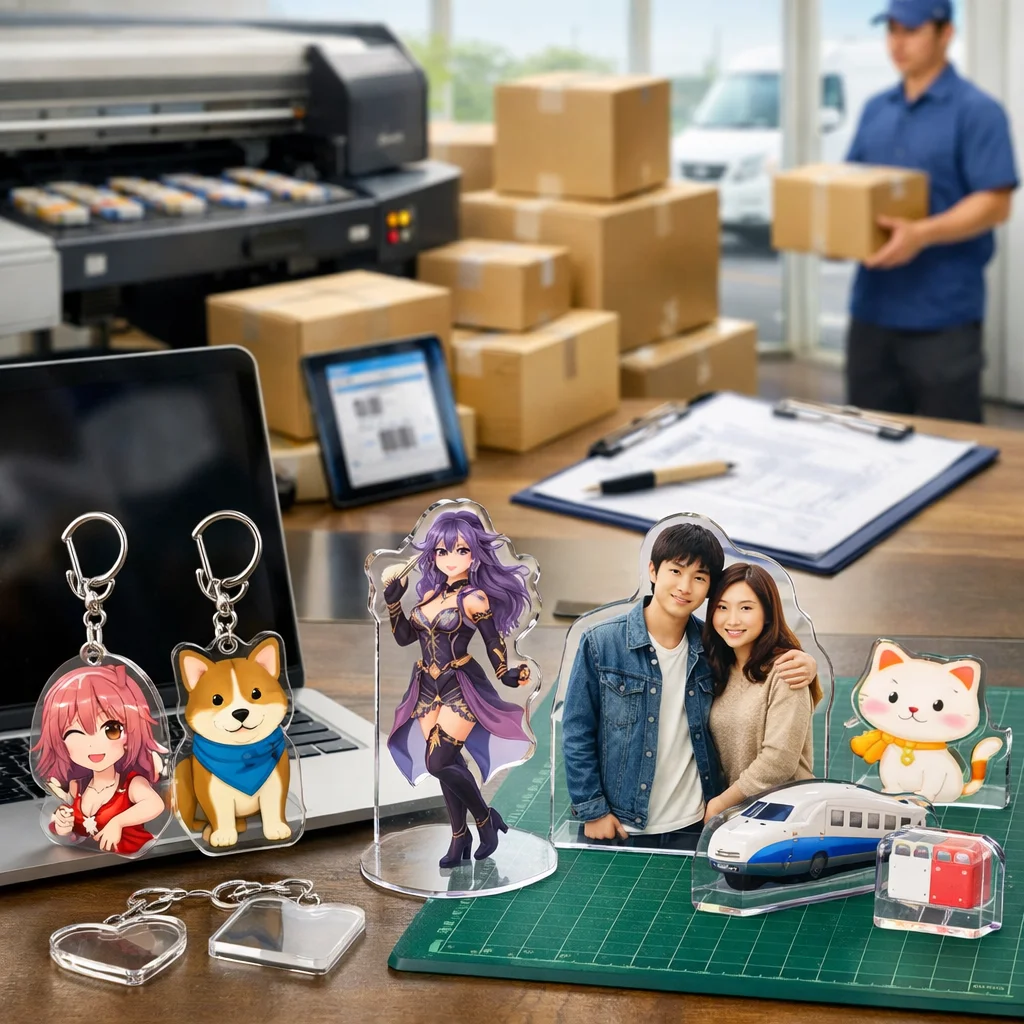 アクリルグッズは、見栄えや耐久性に優れ、小ロット対応が可能で、印刷再現性も高いのが特徴です。コストパフォーマンスが良く、在庫管理も容易です。全国対応の業者を利用すれば、同人頒布や推し活、企業ノベルティとしてさまざまなニーズに応じたカスタムアイテムが手に入ります。