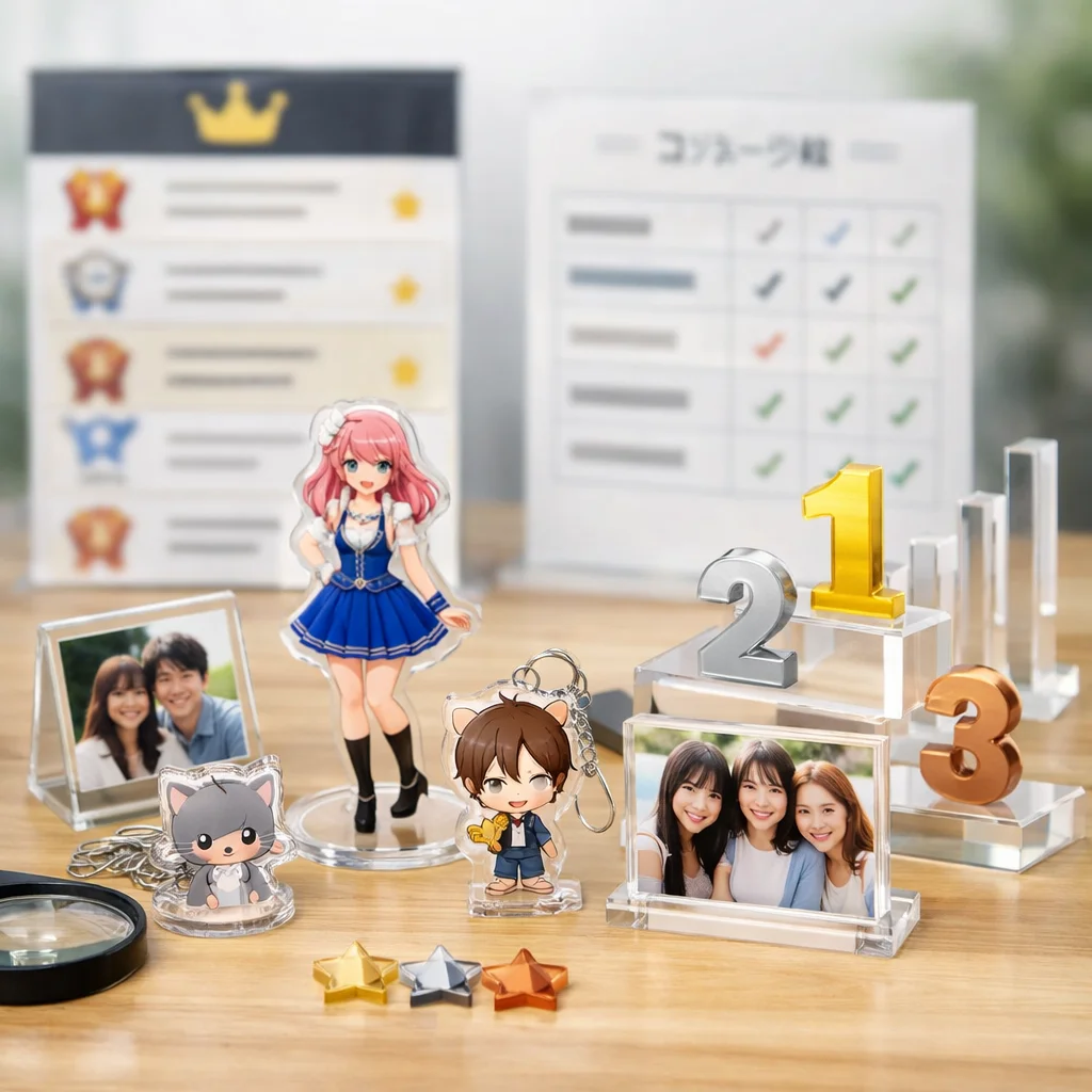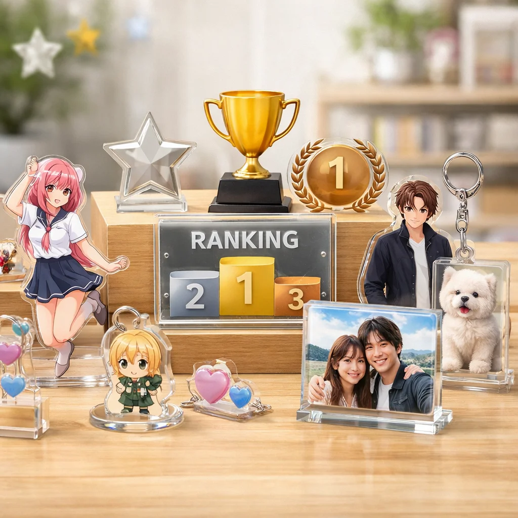 これらの基準をもとに、具体的なアクリルグッズを商品タイプ別にランキングしました。自分に合った商品選びの参考としてご利用ください。