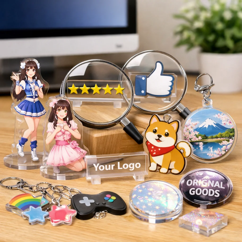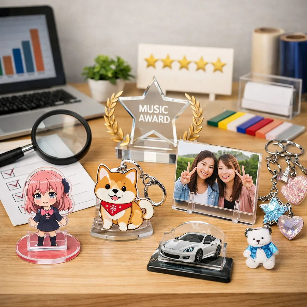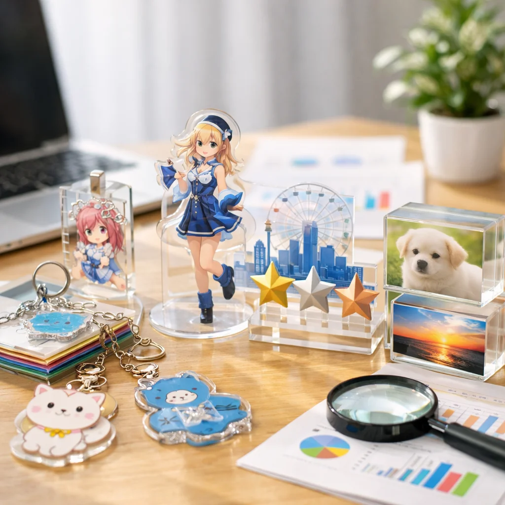 アクリルグッズは、軽量で加工が容易なため多様なデザインに対応でき、低コストで大量生産が可能です。推し活やイベント需要も強まり、小ロット対応で個人でも手軽に製作できます。ただし、参入業者が増える中で品質差が生じるため、評判や口コミを重視して選ぶことが大切です。