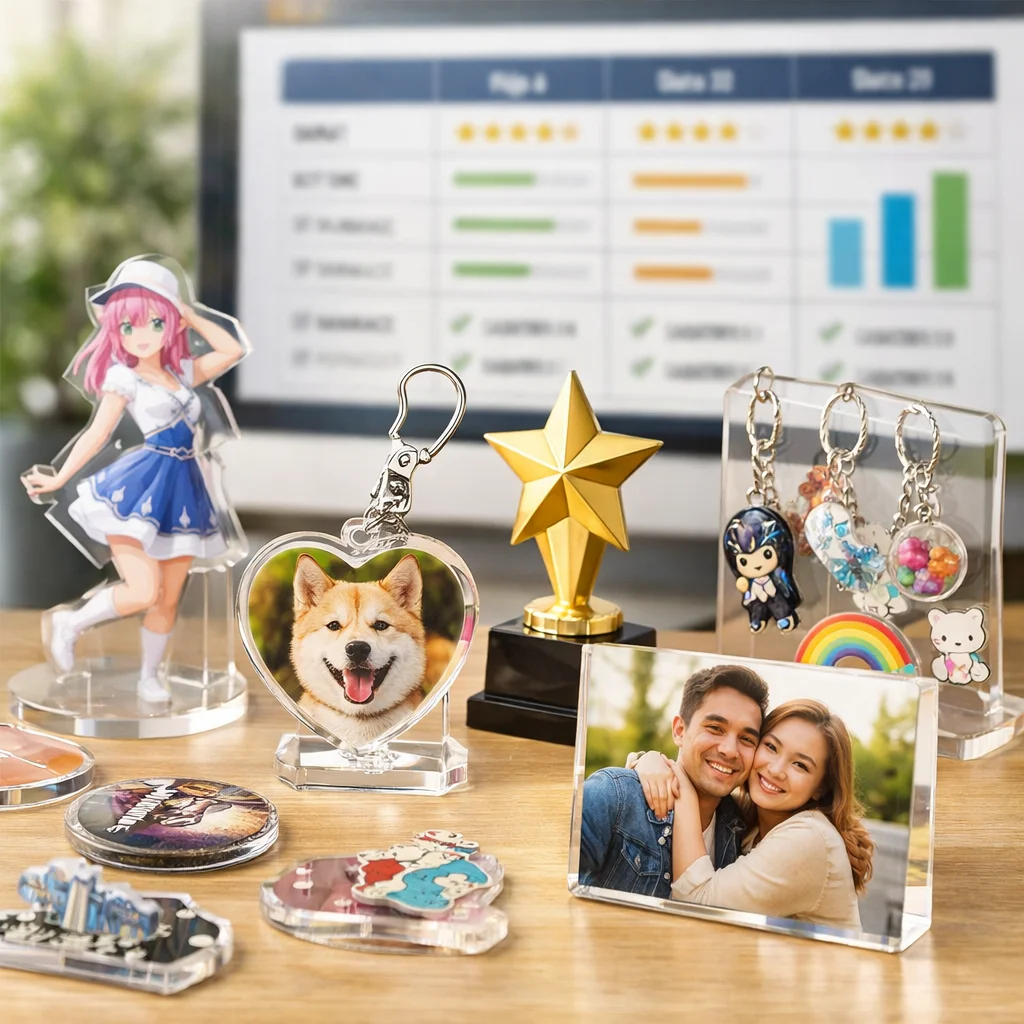 アクリルグッズを選ぶ際は、評判や実績を重視し、用途ごとの色再現、透明感、耐久性、梱包を比較検討することが重要です。