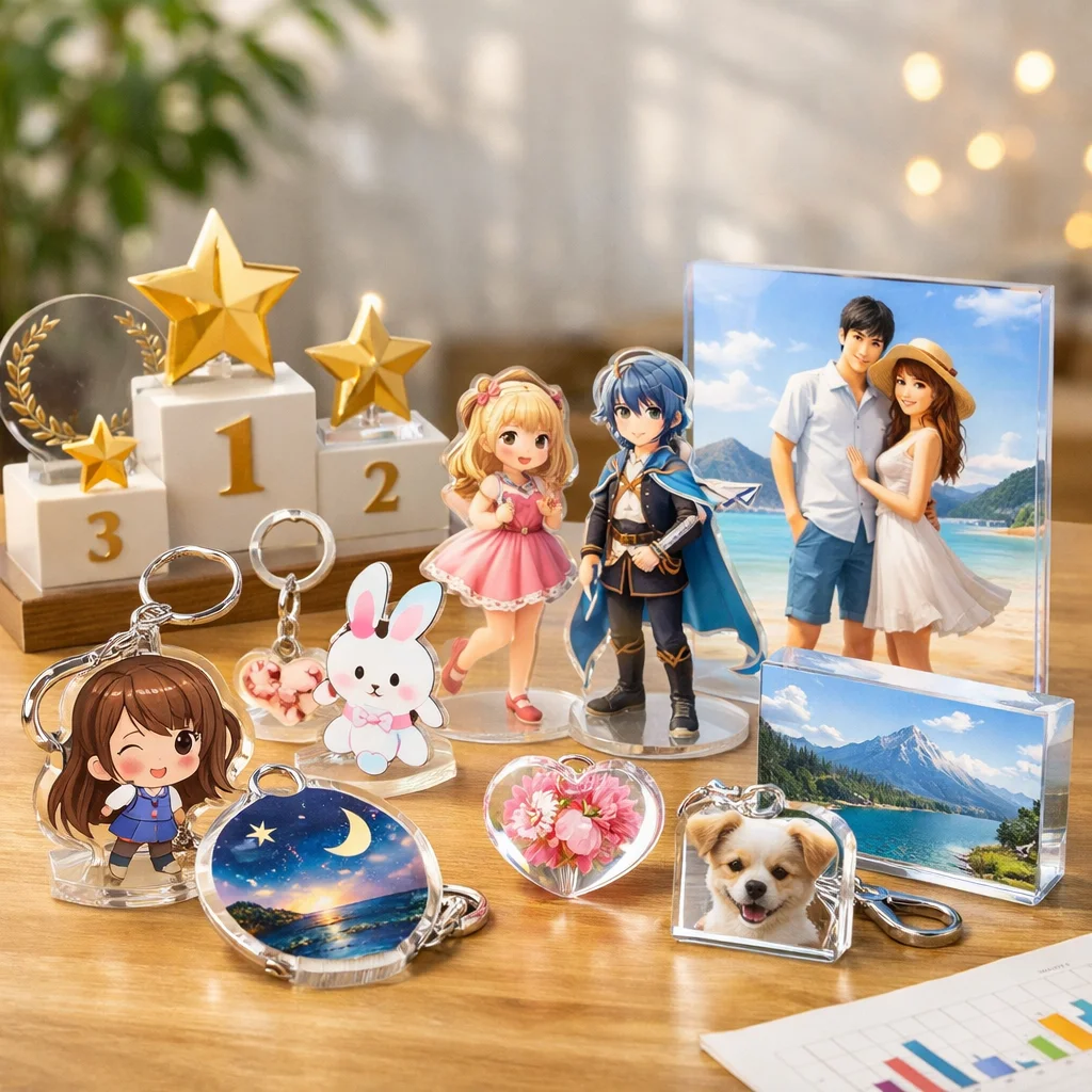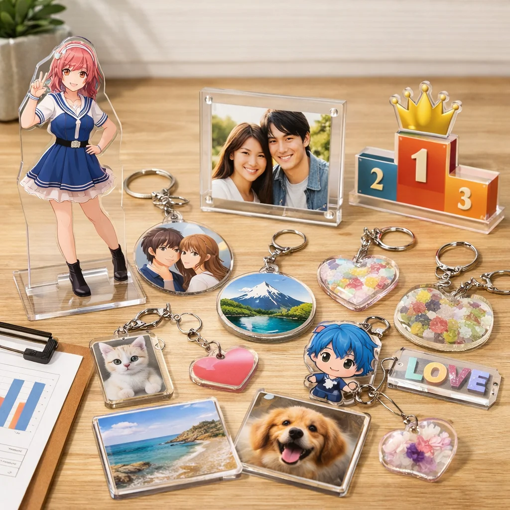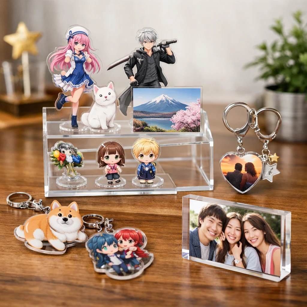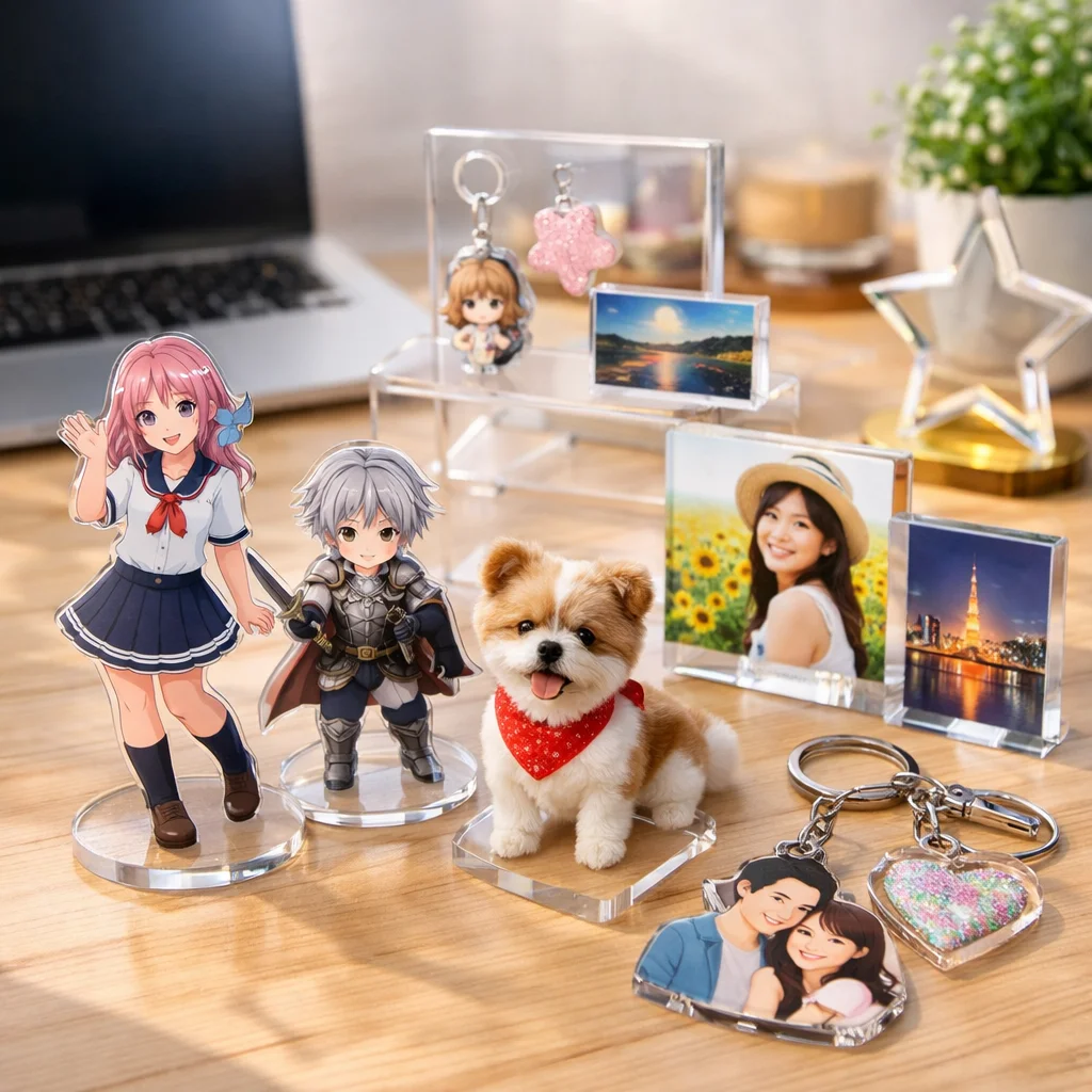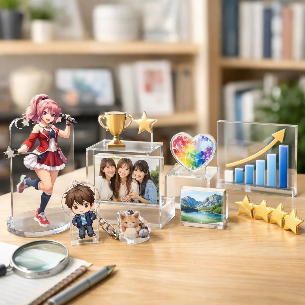 アクリルグッズは、キャラクターやアートを身近に感じられるアイテムとして多くのファンに愛されています。代表的なカテゴリにはアクリルスタンド(アクスタ)、アクリルキーホルダー(アクキー)、アクリルバッジアクリルブロックアクリルプレートなどがあり、それぞれ異なる魅力を持っています。本記事では、これらアクリルグッズの評判や口コミをもとに、比較のポイントを詳しく解説していきます。