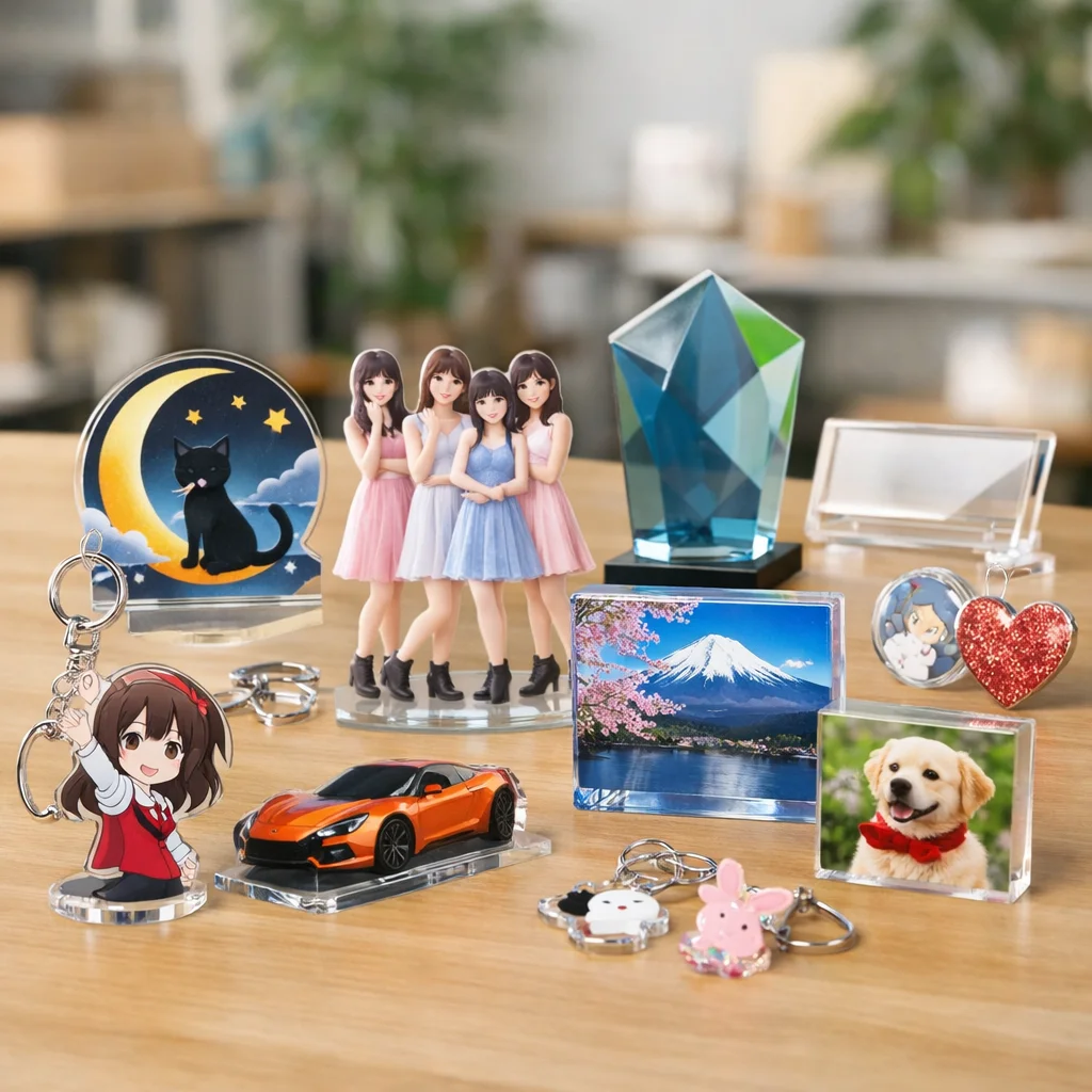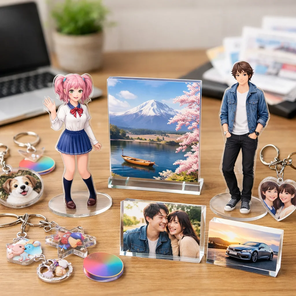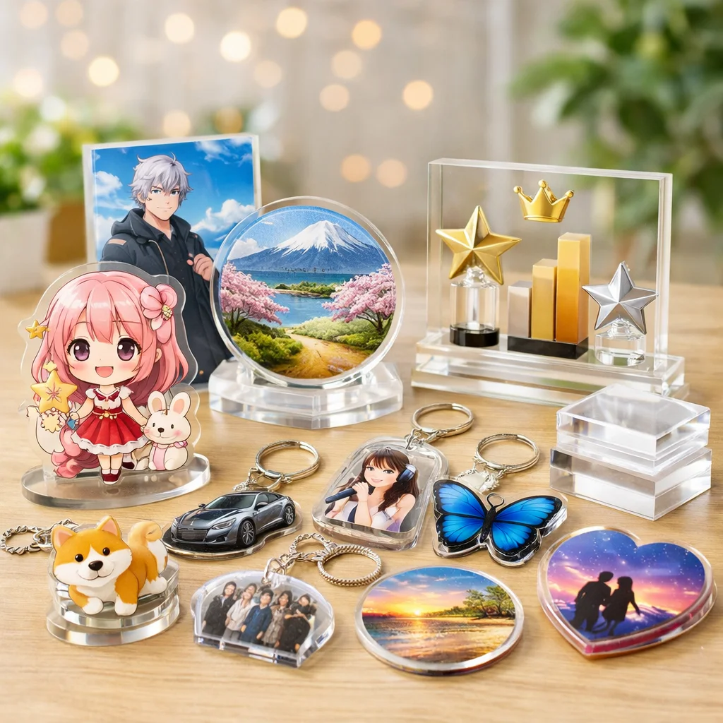 – グラフィック:色再現性が高く、プロ品質のアクリルグッズを制作しています。