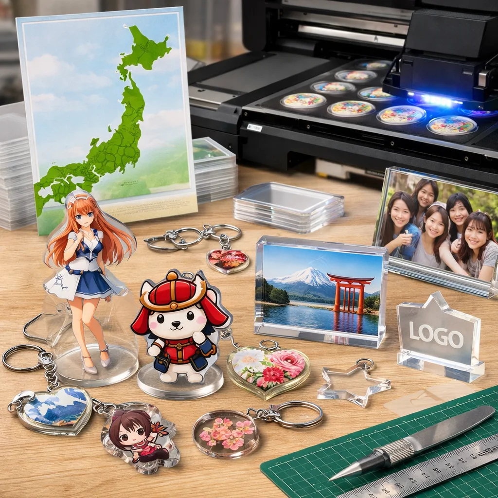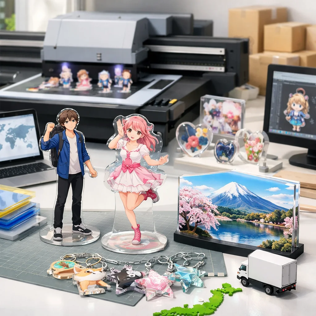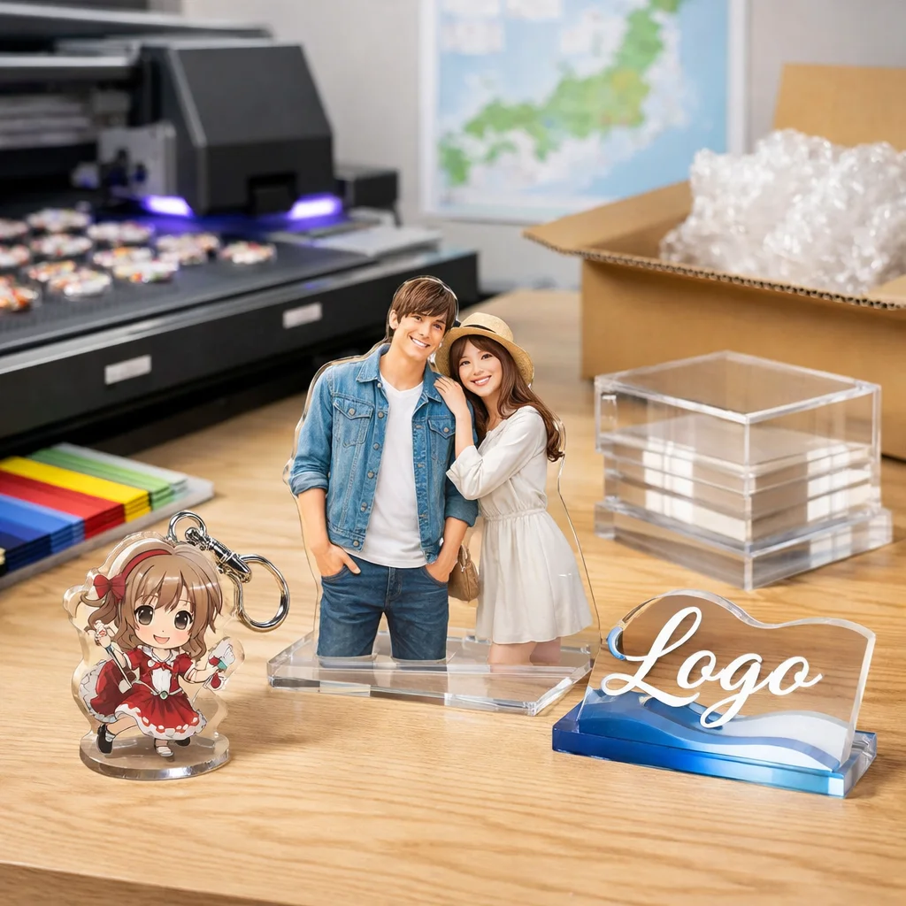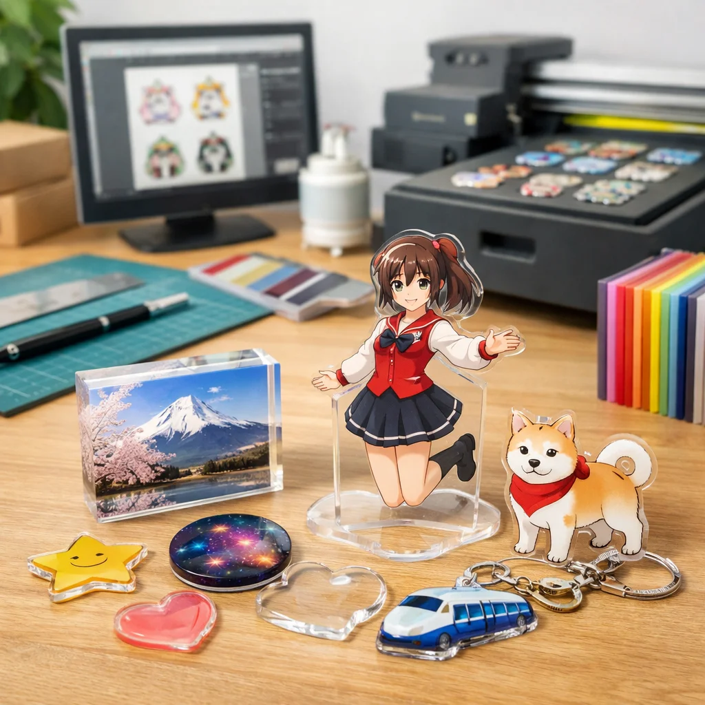 3. 印刷: フルカラー印刷やUV印刷、インクジェット印刷など、さまざまな印刷方法があります。印刷の美しさは、アクリルグッズの魅力を大きく左右します。