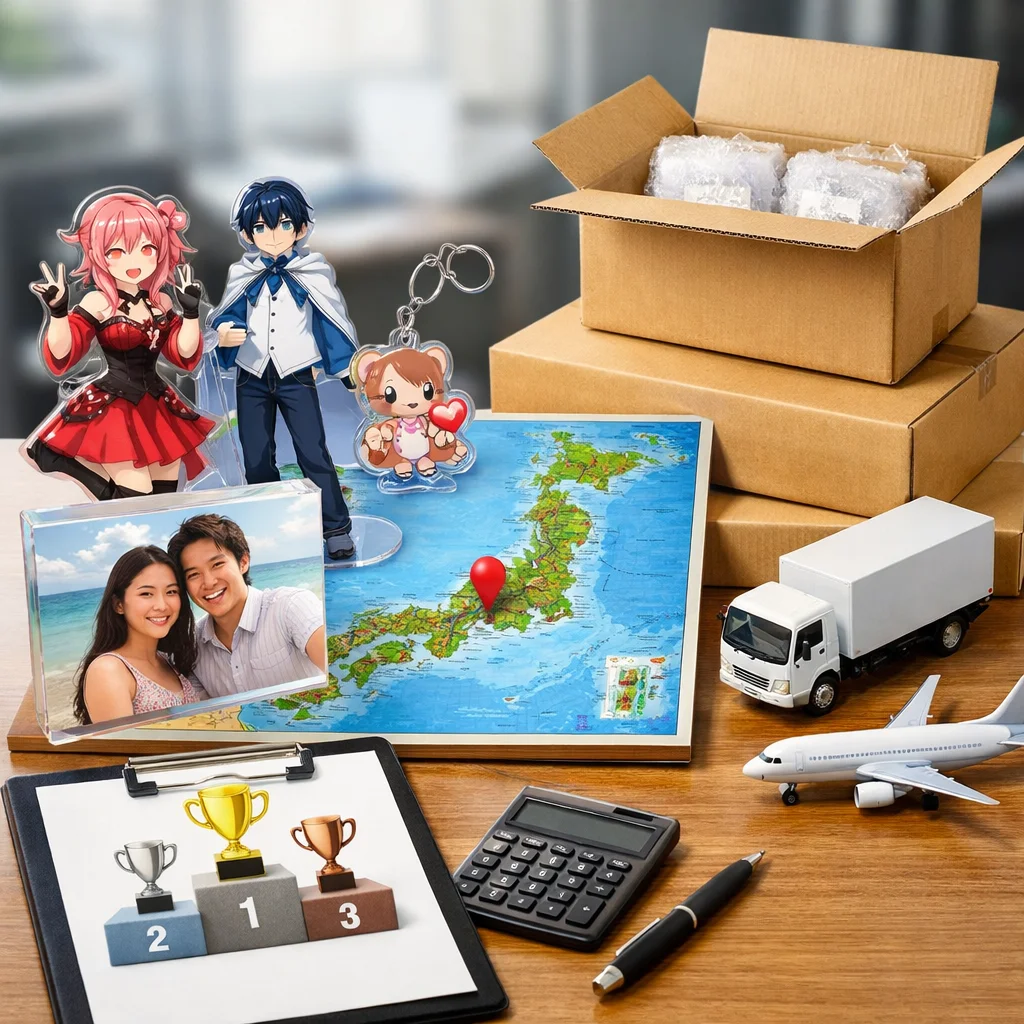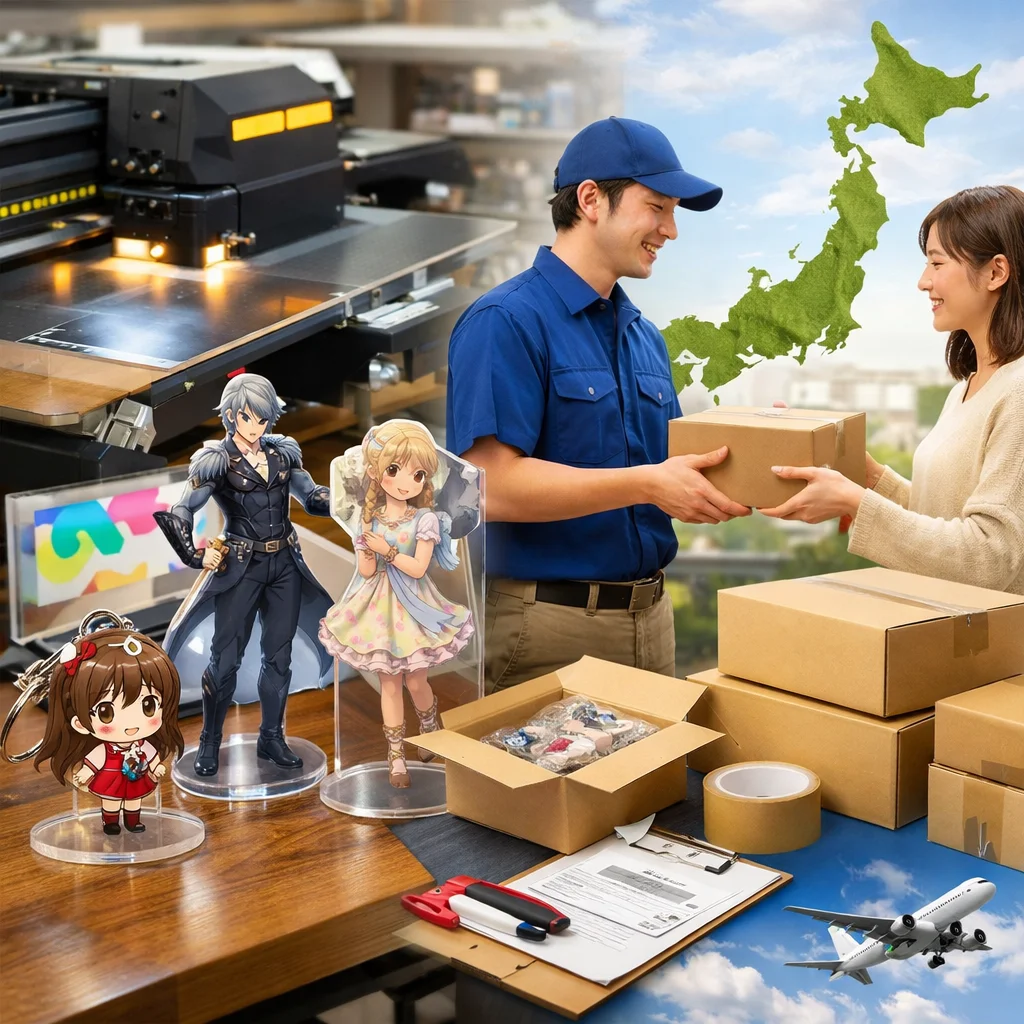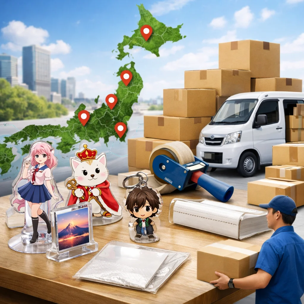 アクリルグッズの購入時は、全国対応の発送サービスを提供する業者を比較することが重要です。送料やリードタイム、物流繁忙期の影響、再配達抑制、梱包規格の変化を考慮し、各社のサービス内容をしっかり確認して最適な選択をしましょう。