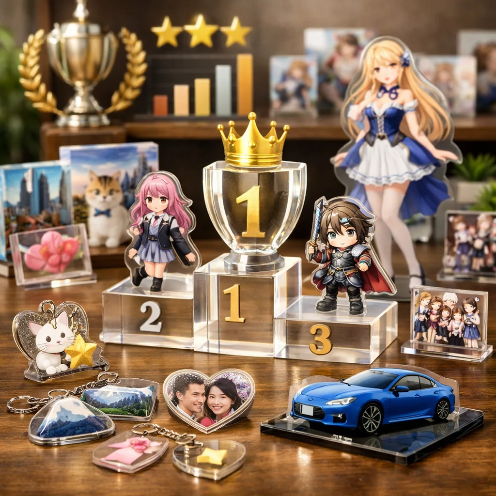 アクリルグッズの人気は、推し活やイベント、ノベルティ需要の高まりに起因します。透明感や発色の良さ、軽量で耐久性に優れる特性が支持を集め、アクキーやアクスタなど多様な製品がユーザーの心を掴んでいます。専門店での比較やランキングも、購入の後押しとなっています。