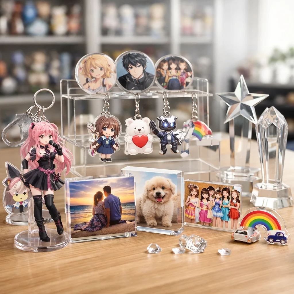 それぞれのアクリルグッズには、特有の魅力があり、組み合わせながら持ち歩くことで、より一層の楽しみ方が広がります。アクリルグッズは、個々の想いを表現できるだけでなく、生活の中に楽しさを加えるアイテムとして、これからも多くの人々に愛され続けるでしょう。