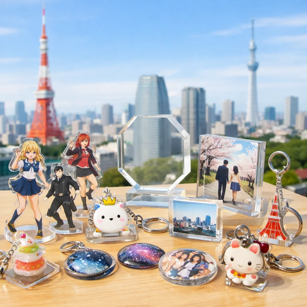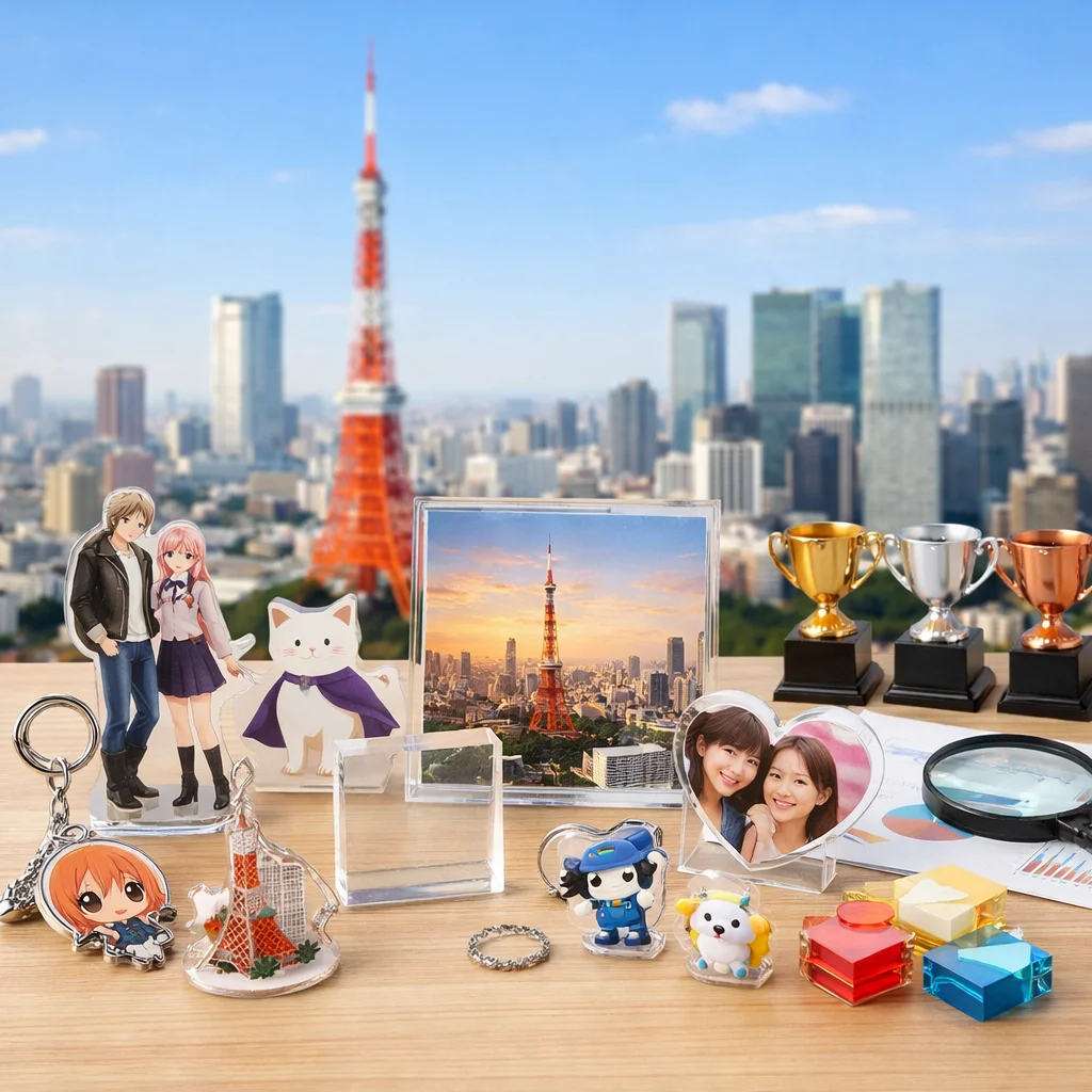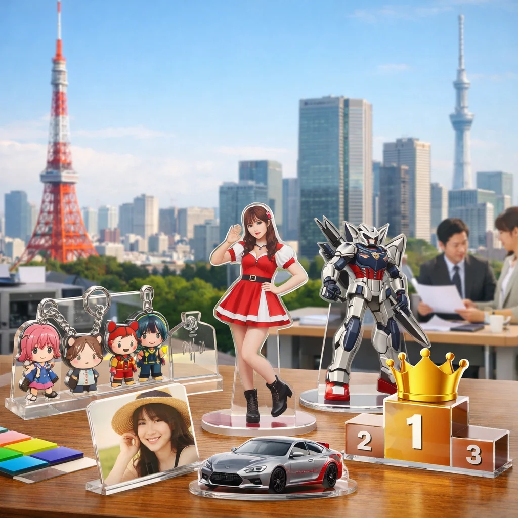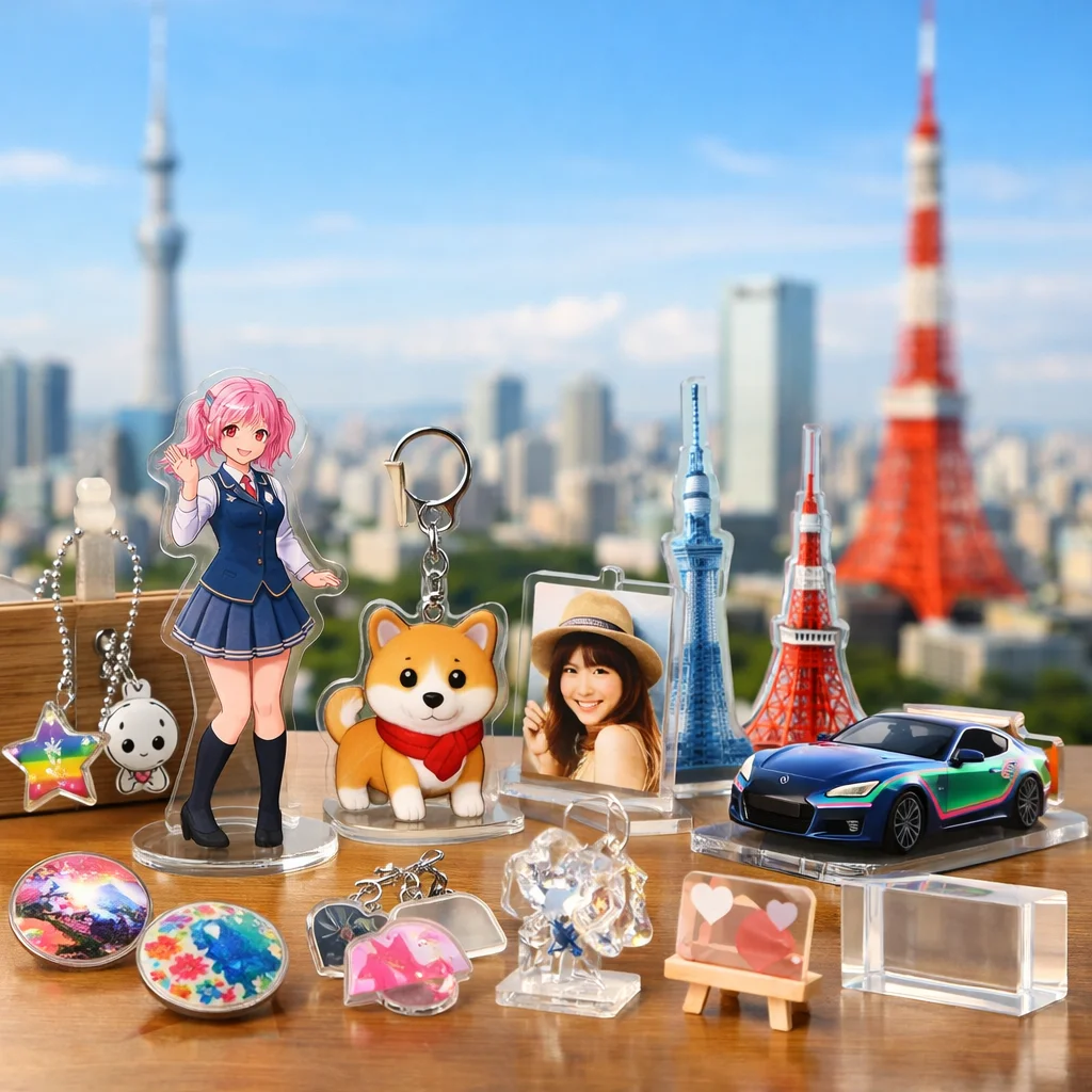近年、アクリルグッズはその多様性と魅力から、東京を中心としたアクリルグッズ業者によって多くの人気商品が生み出されています。特に、アクリルスタンド(アクスタ)、アクリルキーホルダー(アクキー)、アクリルブロック(アクブロ)、そしてフォトプロップスなどのアイテムが、ユーザーから高い評価を受けています。