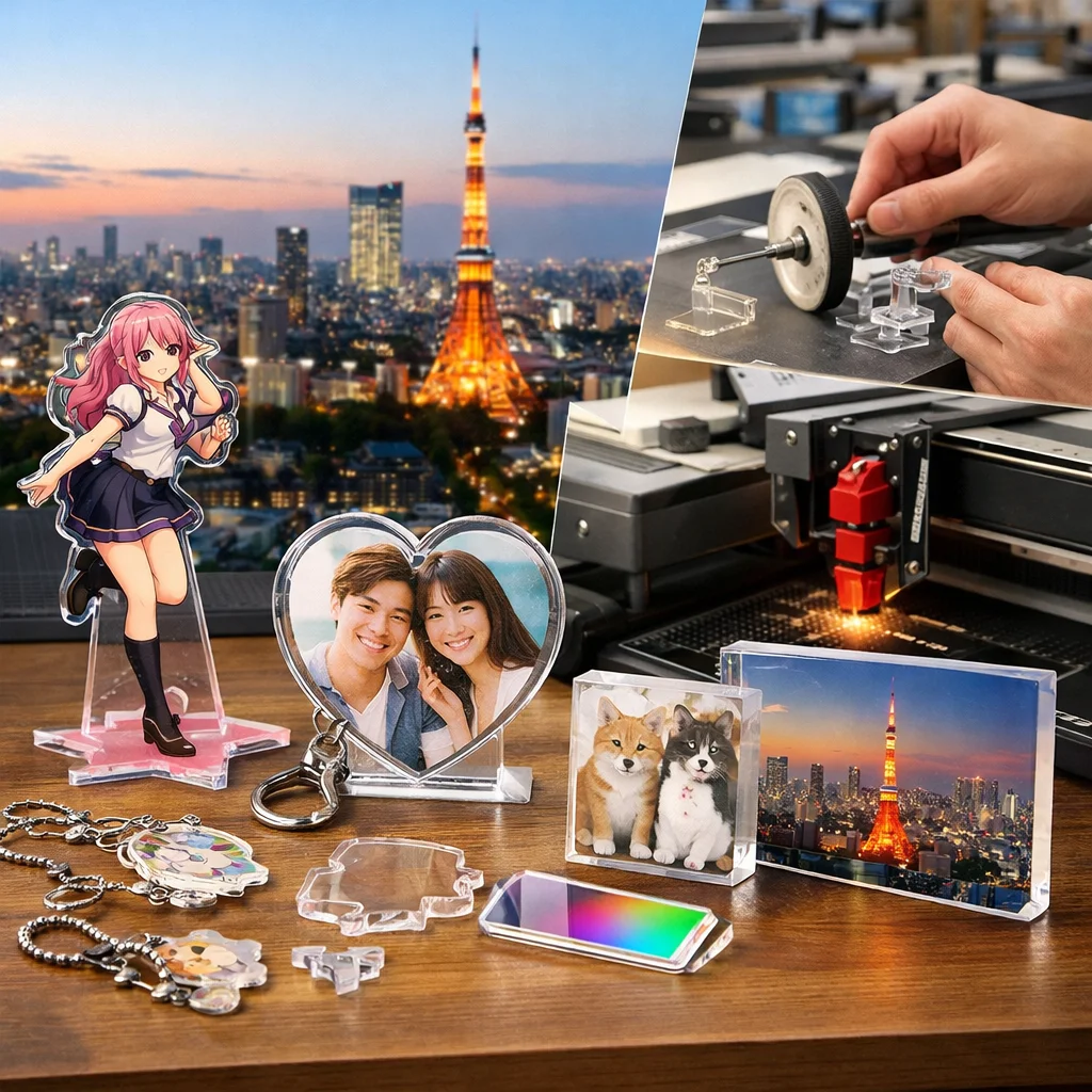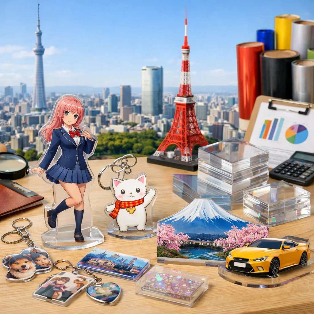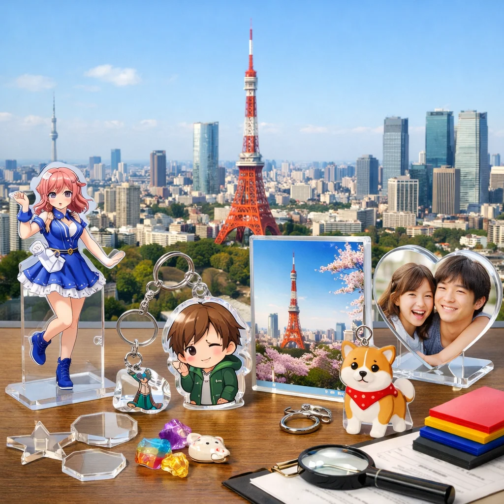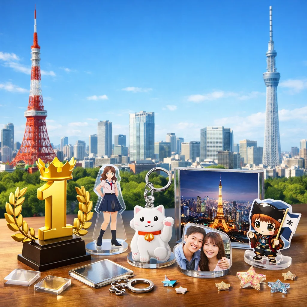近年、アクリルグッズはその多様性と魅力から、東京を中心としたアクリルグッズ業者によって多くの人気商品が生み出されています。特に、アクリルスタンド(アクスタ)、アクリルキーホルダー(アクキー)、アクリルブロック(アクブロ)、そしてフォトプロップスなどのアイテムが、ユーザーから高い評価を受けています。