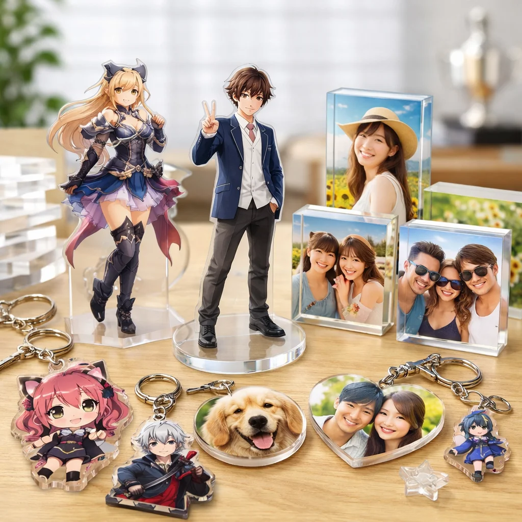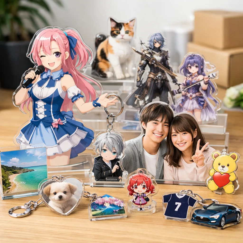 アクリルグッズの人気は、個人の趣味や企業のプロモーション活動など、多岐にわたる用途で高まっています。特に、アクスタやアクキーは、その手軽さとデザインの自由度から、多くのファンに支持されています。