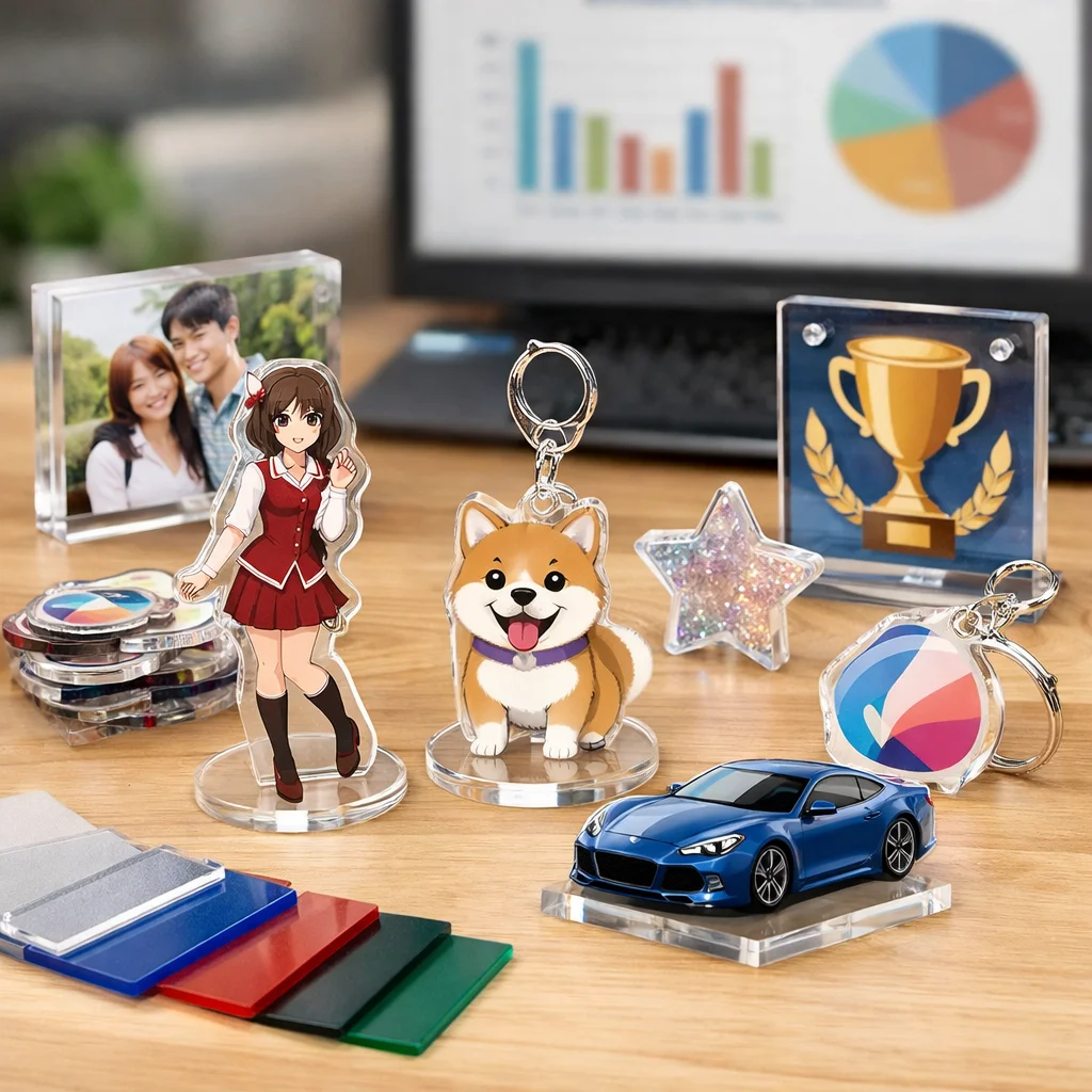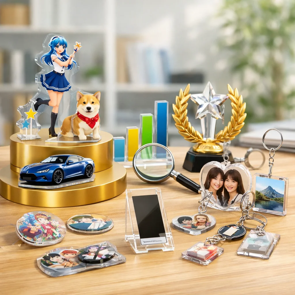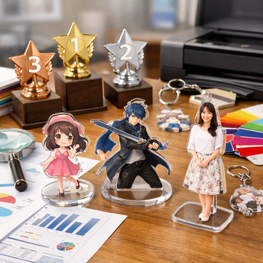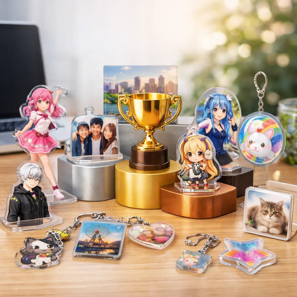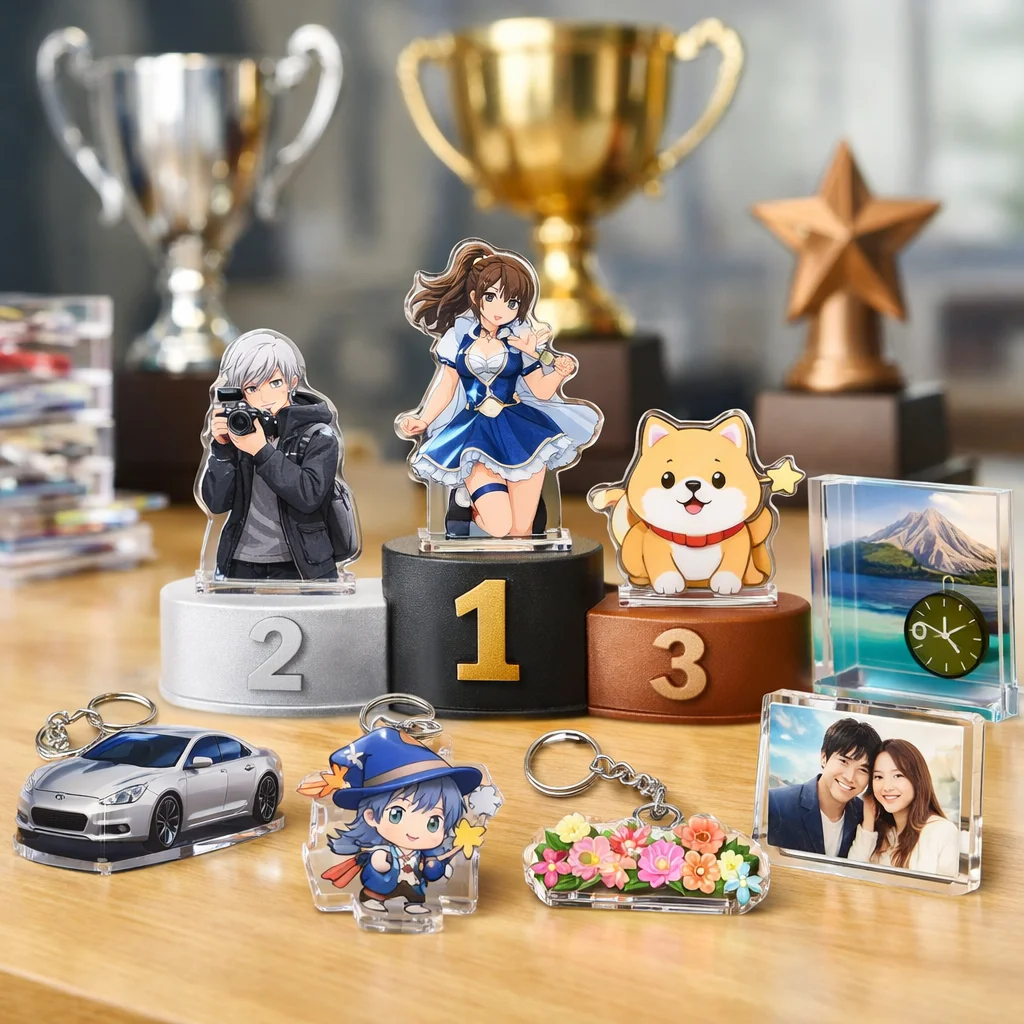 これらのトレンドを踏まえ、アクリルグッズ業者は市場の変化に柔軟に対応し、顧客の多様なニーズに応える製品開発やサービス提供を行っています。今後も、技術革新や環境意識の高まり、そして消費者の嗜好の変化に合わせて、アクリルグッズ市場はさらに進化していくと考えられます。