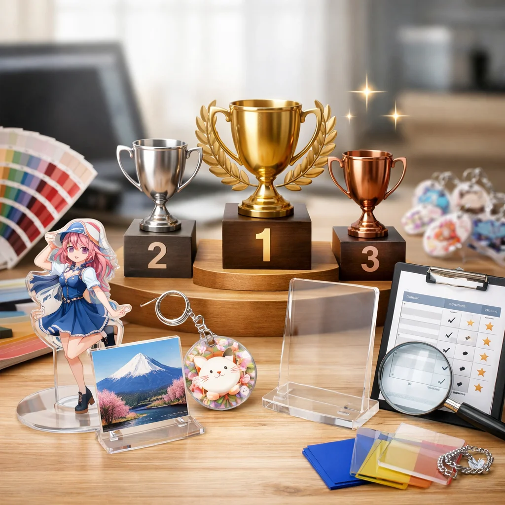 アクリルグッズ業者を比較する際の主な評価軸は以下の通りです: