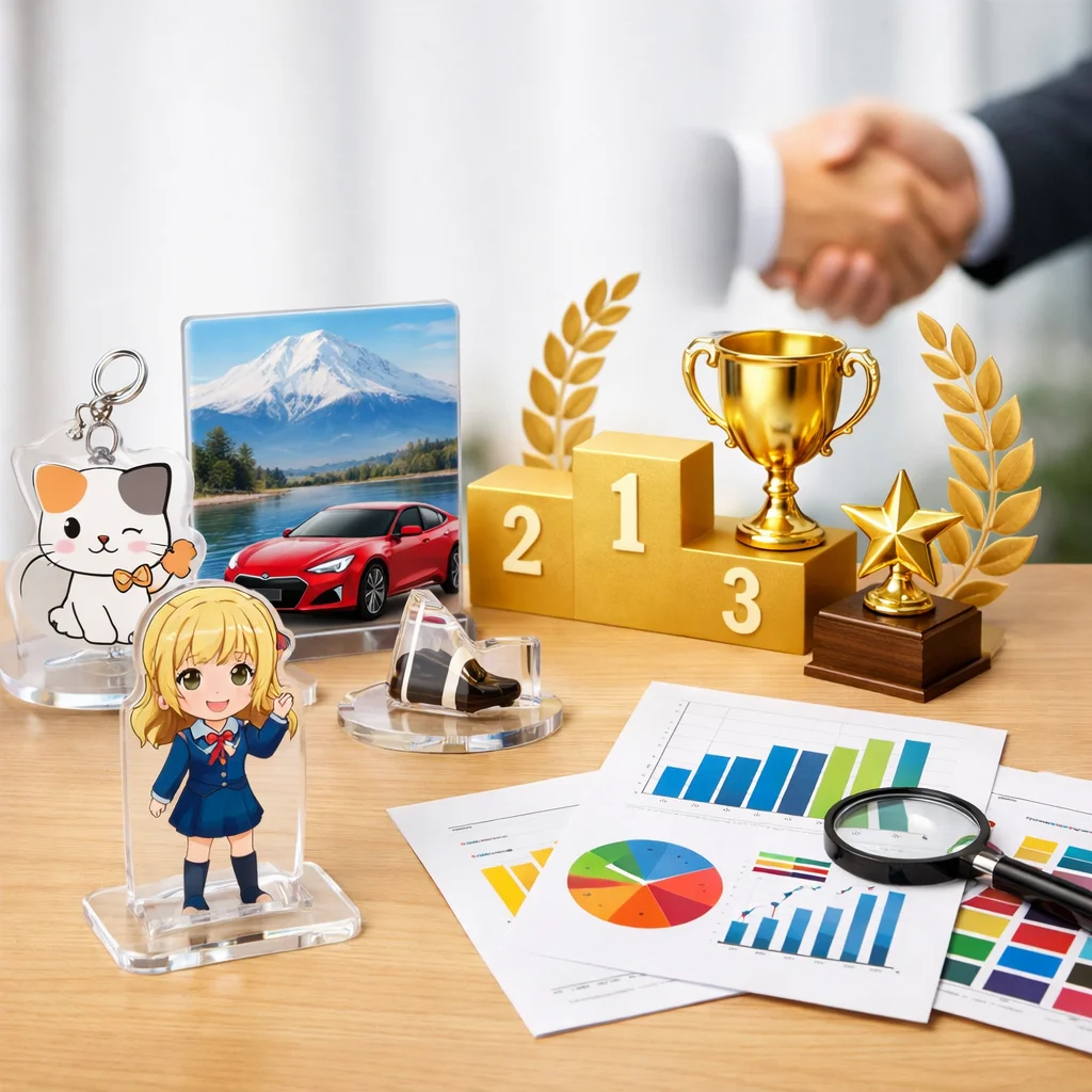 これらの要素を踏まえ、発注者はアクリルグッズ業者の実績やランキングを参考にし、適切な業者選びを行うことが重要です。市場動向を注視し、柔軟に対応することで、より魅力的なアクリルグッズの製作が可能となります。