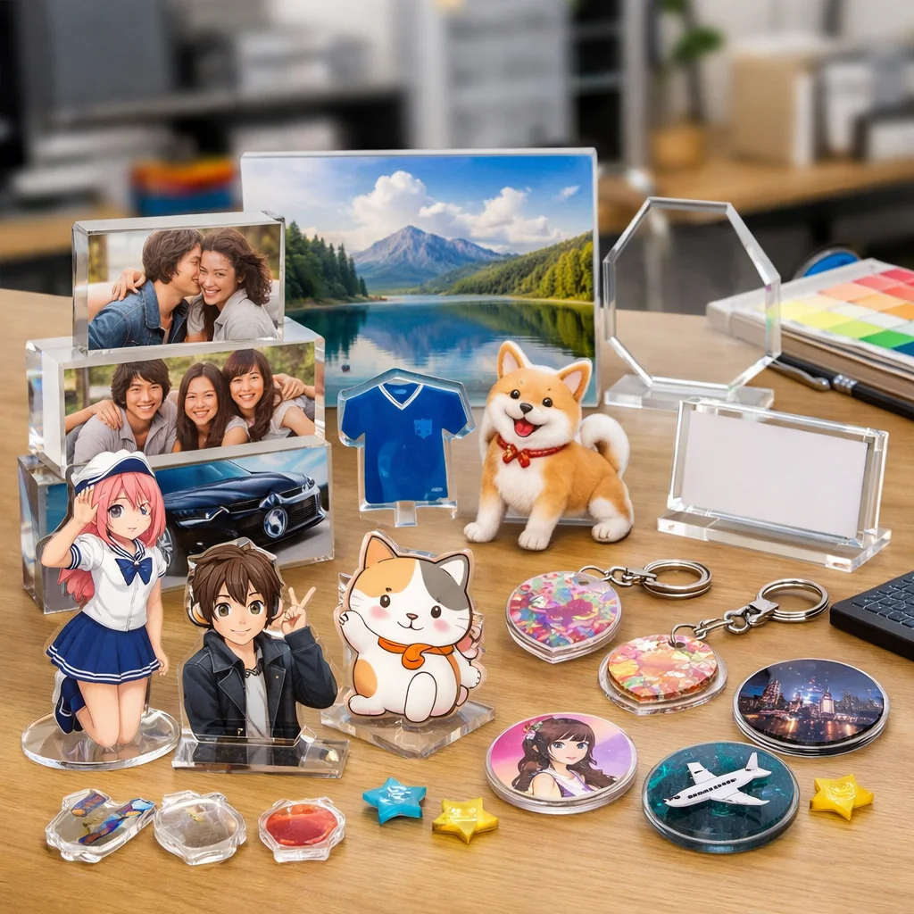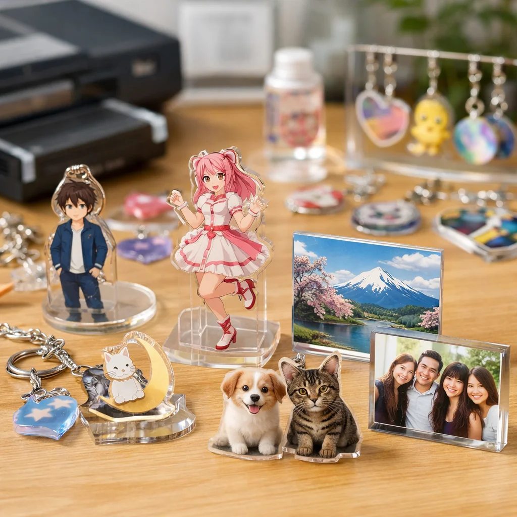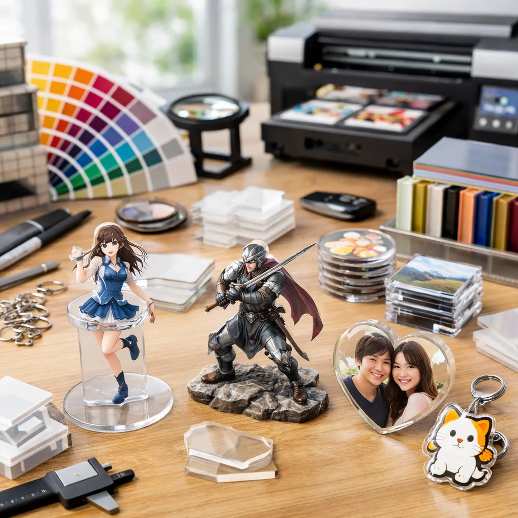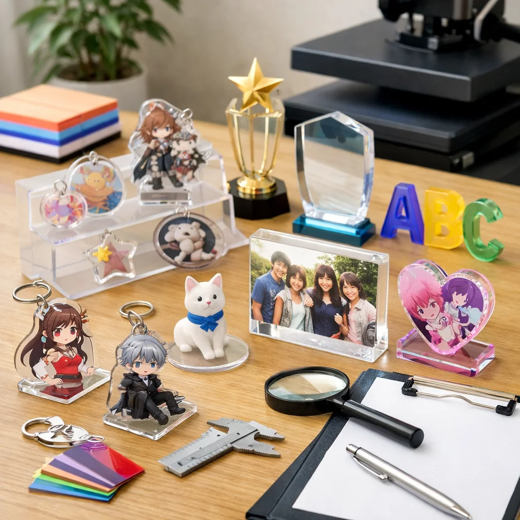 まず、アクリルグッズのサンプルには主に以下の三種類があります。これらのサンプルそれぞれが持つ特性を理解することが、成功するアクリルグッズ制作には不可欠です。