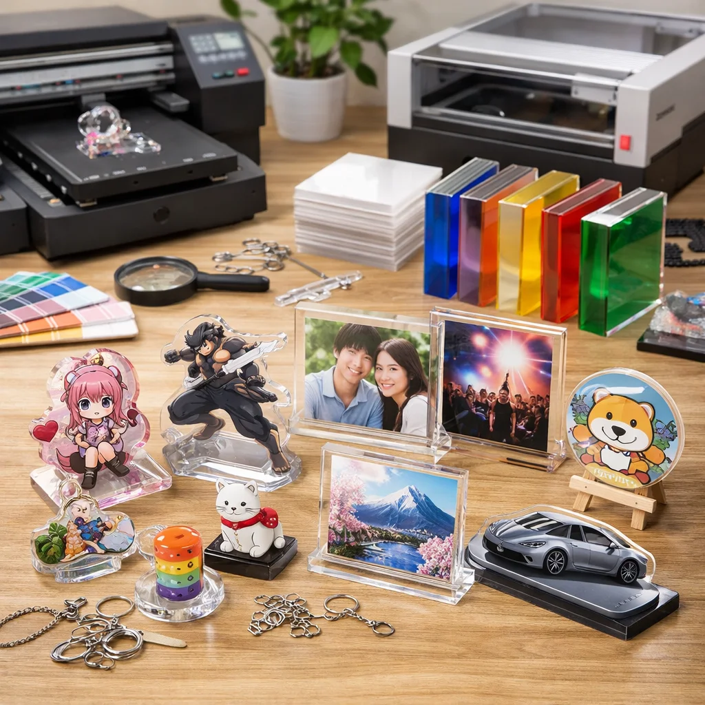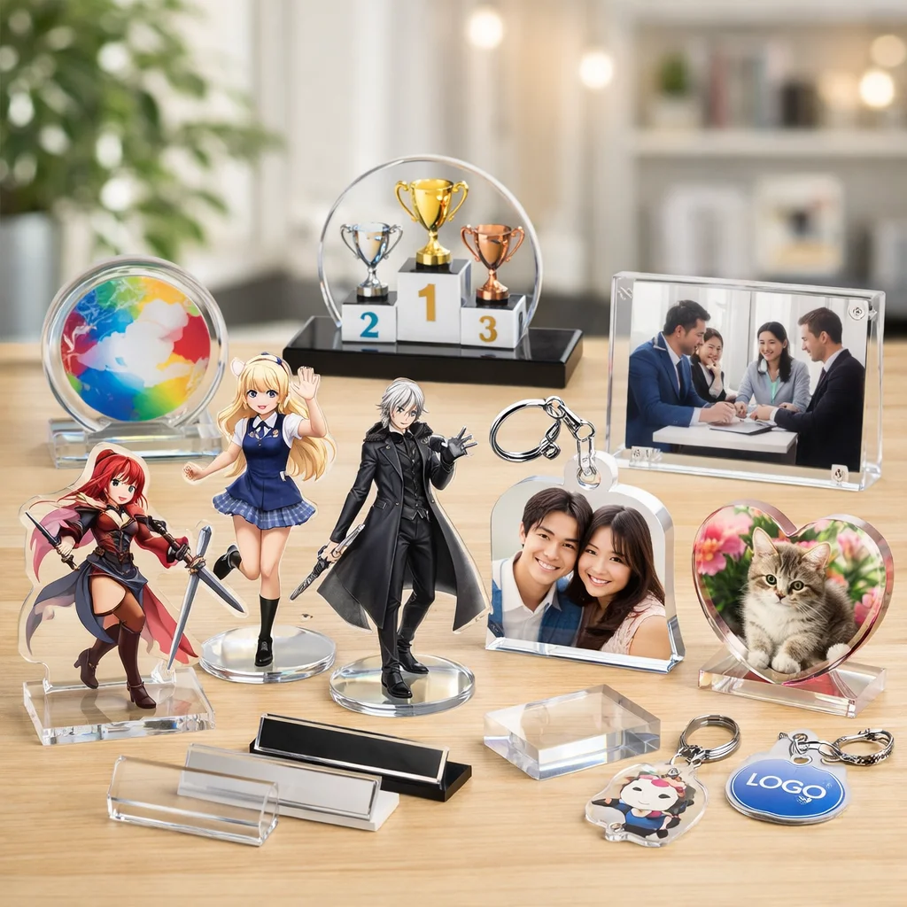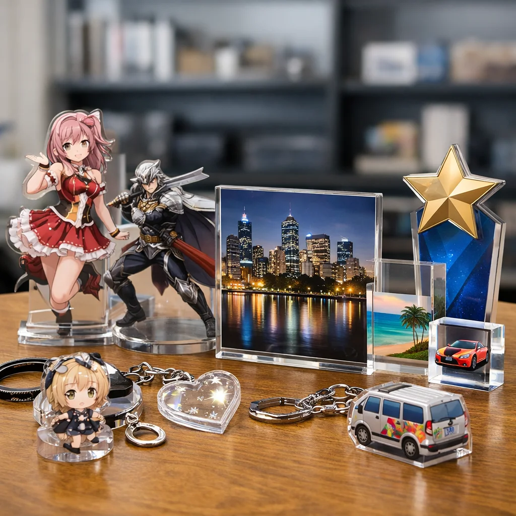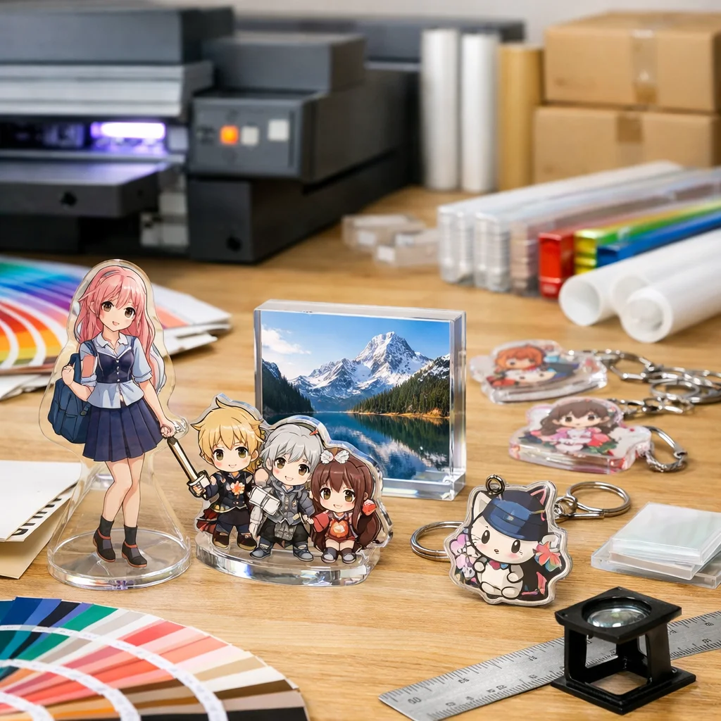 まず、アクリルグッズのサンプルには主に以下の三種類があります。これらのサンプルそれぞれが持つ特性を理解することが、成功するアクリルグッズ制作には不可欠です。