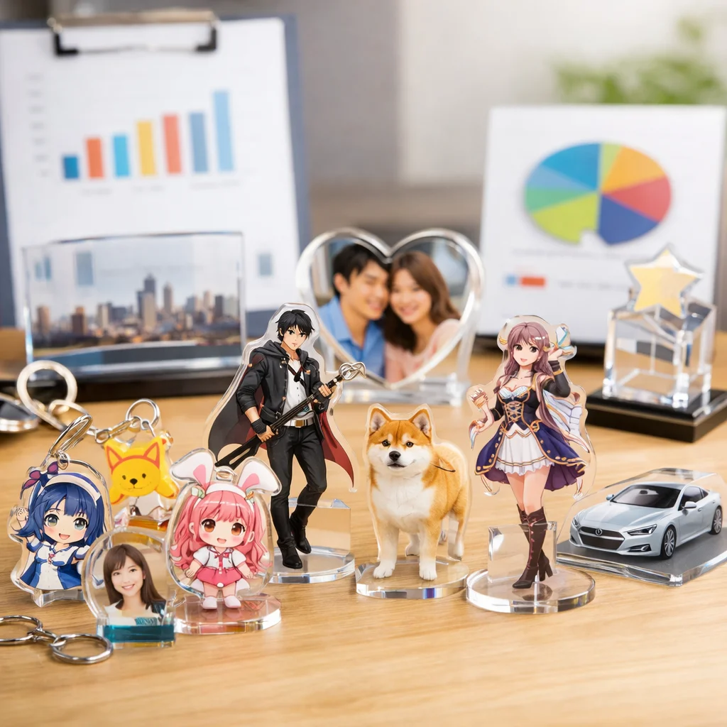 – 同人・企業ノベルティ: 独自のデザインや仕様を持つアクリルグッズを製作する場合、業者のデザイン対応力や柔軟性、過去の製作事例を比較することで、理想の製品を実現できます。