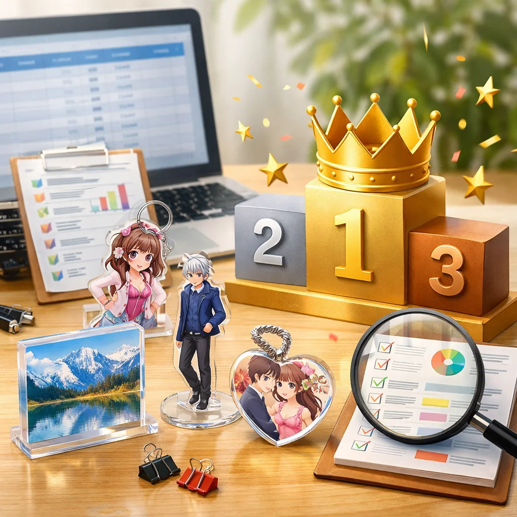 これらの評価軸を総合的に考慮し、各アクリルグッズ業者のランキングを作成しました。選定にあたっては、各業者の公式サイトや顧客レビューを参考にし、信頼性の高い情報を基にしています。