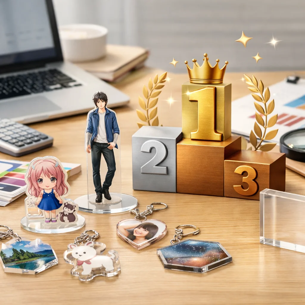 以下に、アクリルグッズ業者の人気ランキングをご紹介します。ランキングは、上記の評価軸を元に、各業者の特徴や強みをまとめています。