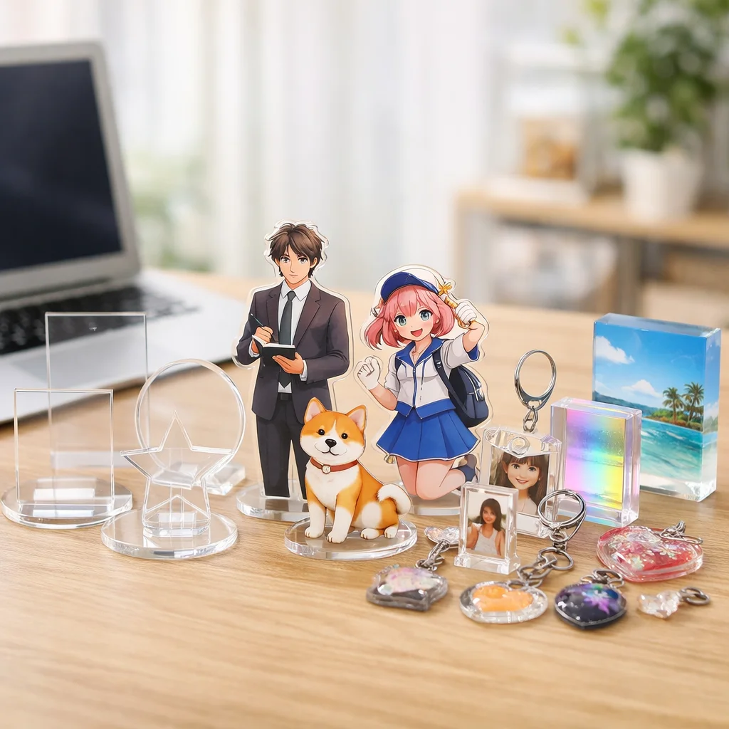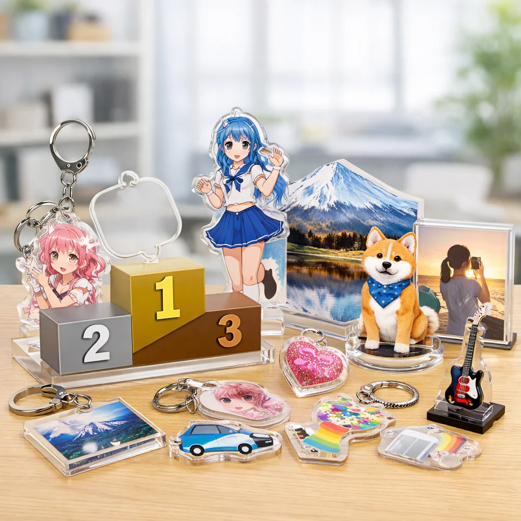 アクリルグッズは、さまざまな場面での使用に適しており、最近ではデザイン性や機能性も向上しています。では、具体的な用途に分けて、必要な仕様、向く業者のタイプ、そして失敗しがちなポイントを見ていきましょう。