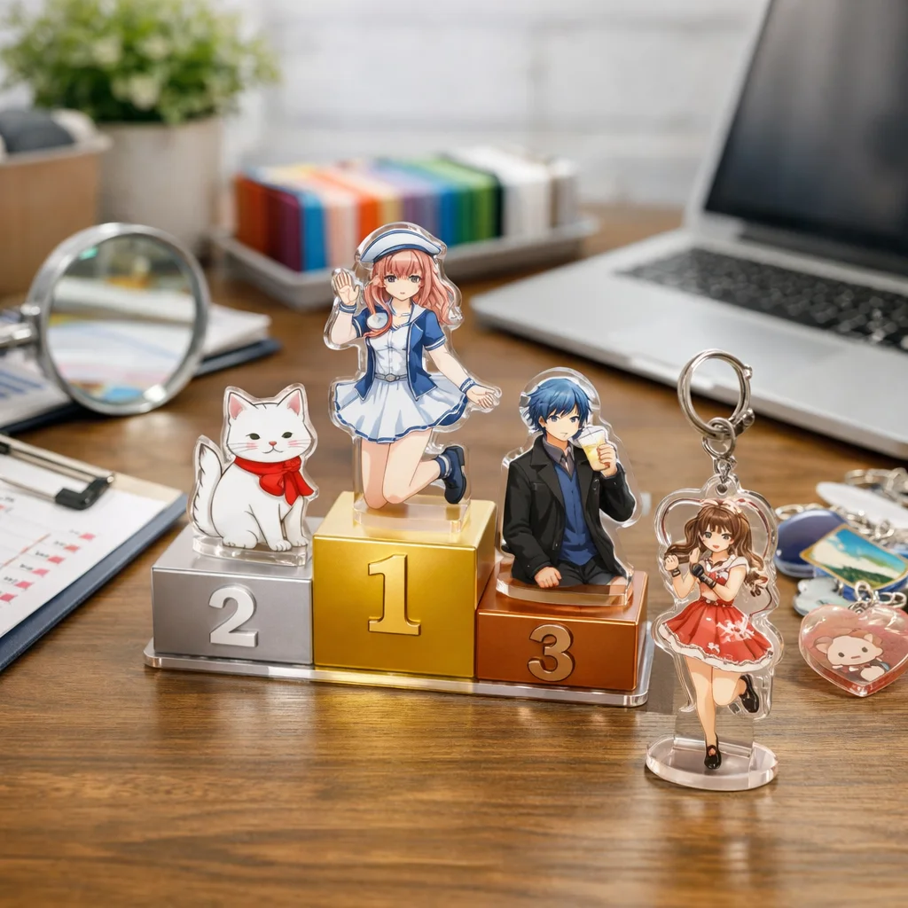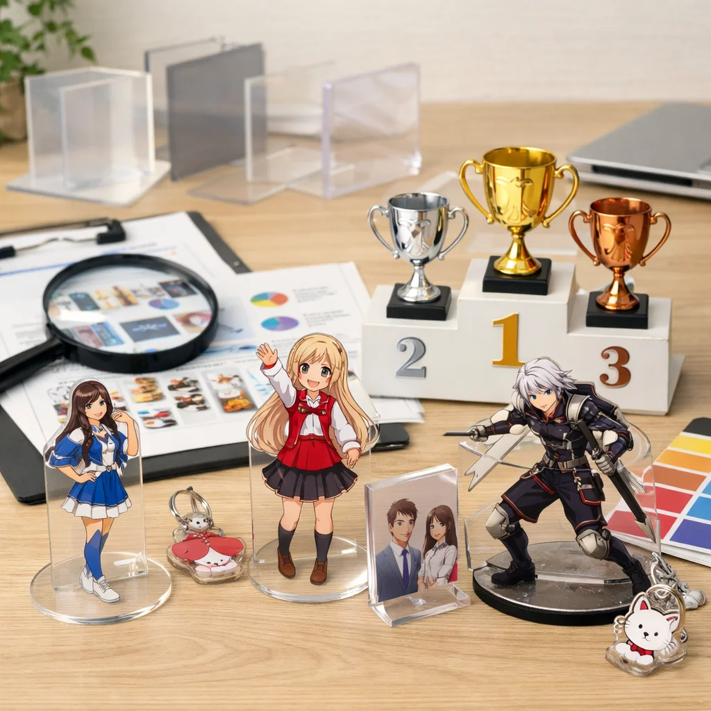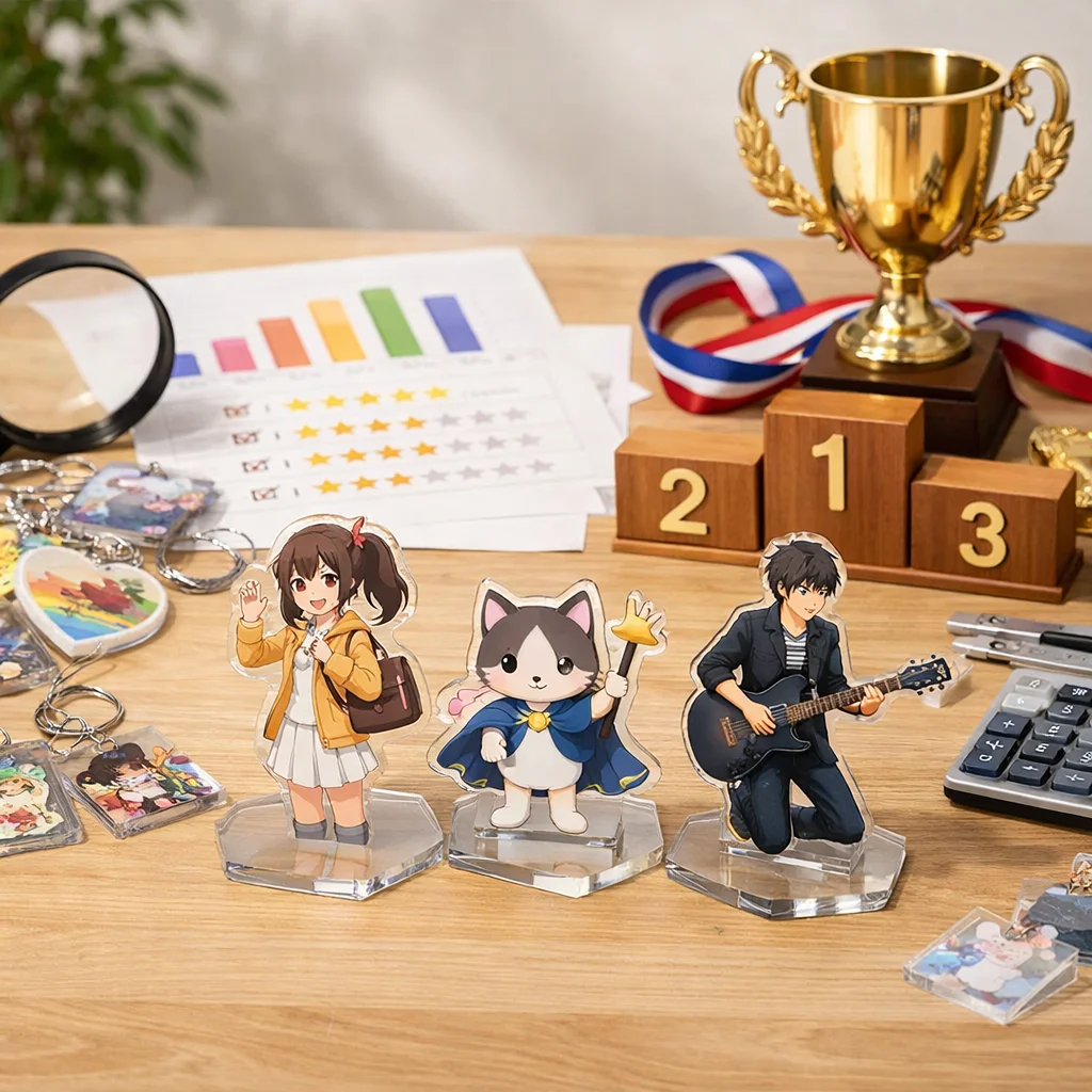 台座凝りのあるデザインも人気です。アクリルグッズの台座部分に工夫を凝らすことで、全体のデザイン性が向上し、消費者の関心を引きます。アクリルグッズの比較や業者のランキングでも、このようなデザインのアクリルグッズが評価されています。