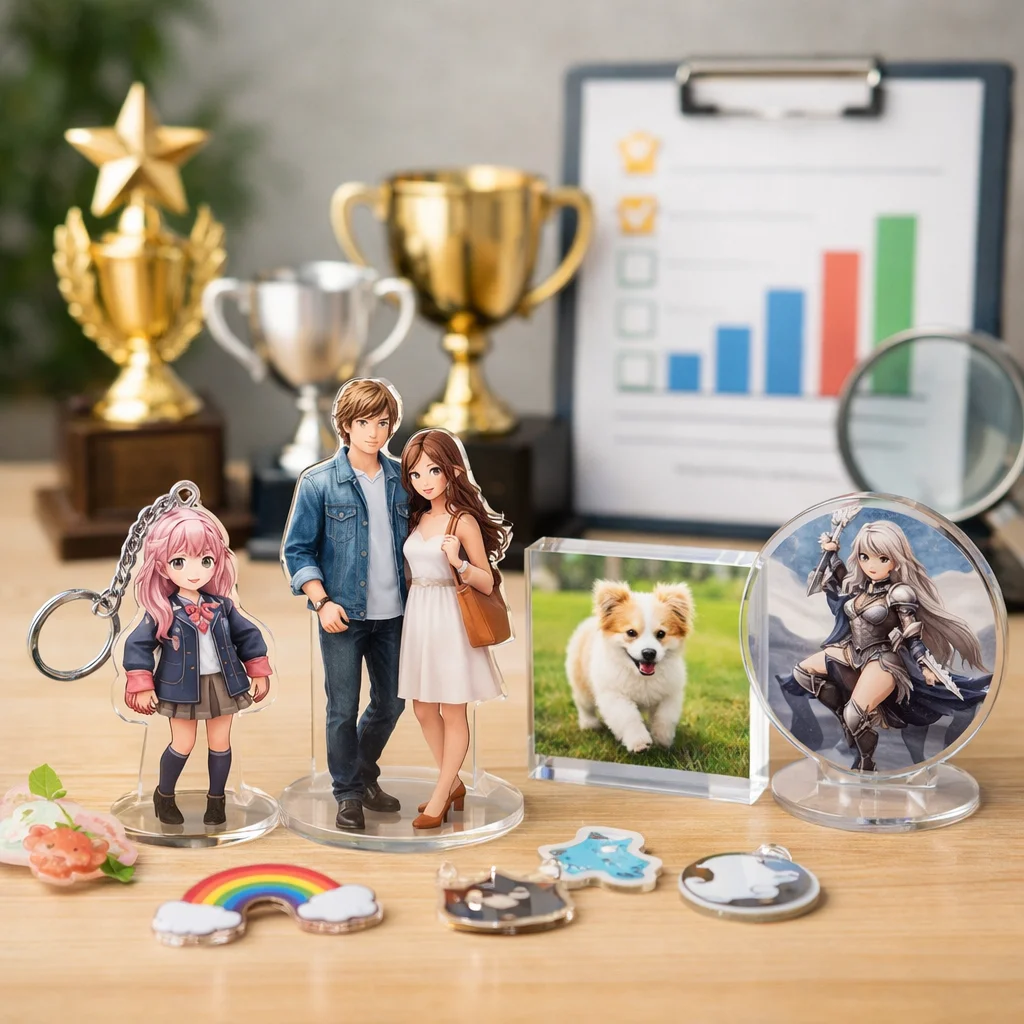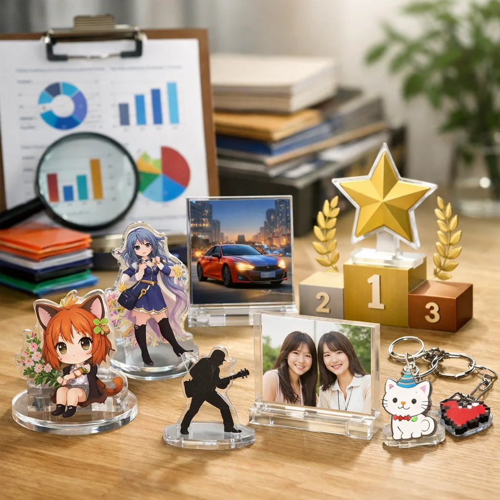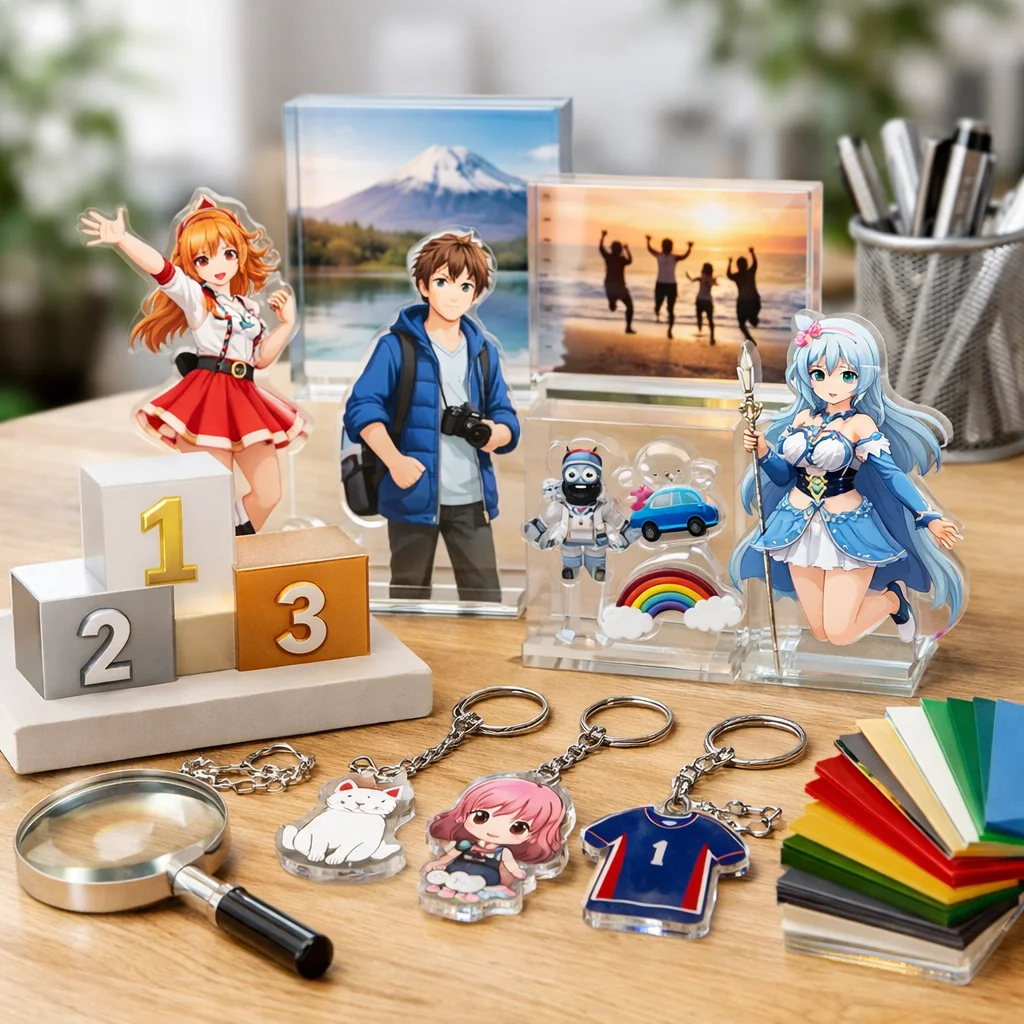 台座凝りのあるデザインも人気です。アクリルグッズの台座部分に工夫を凝らすことで、全体のデザイン性が向上し、消費者の関心を引きます。アクリルグッズの比較や業者のランキングでも、このようなデザインのアクリルグッズが評価されています。