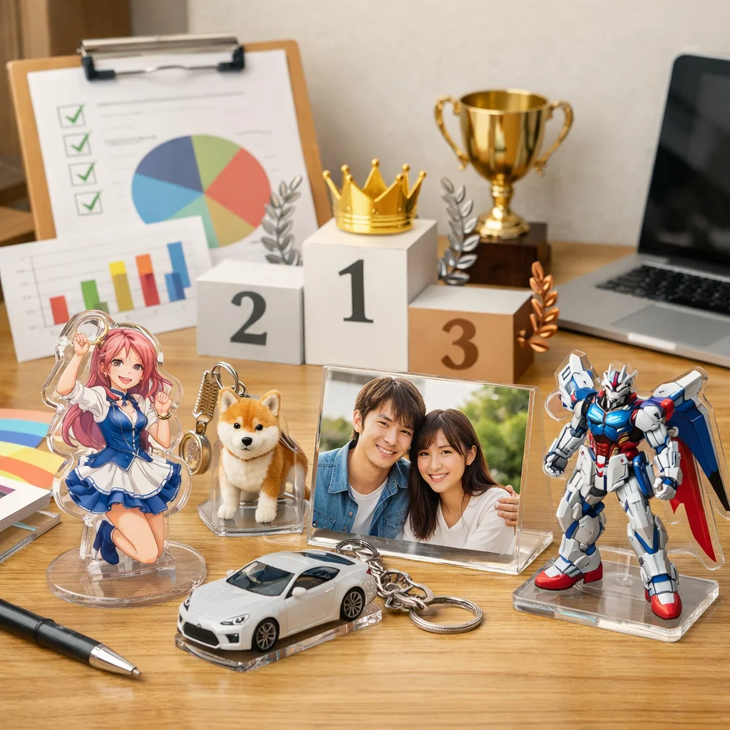 アクリルグッズは、その透明感と軽量さから、多くの人々に愛されるアイテムです。特に、アクリルスタンドやアクリルキーホルダーなどのアクリルグッズは、個人の趣味や企業のプロモーション活動において、欠かせない存在となっています。しかし、数多くのアクリルグッズを提供する業者が存在する中で、どの業者を選ぶべきか悩む方も多いのではないでしょうか。そこで、アクリルグッズの品質や価格、納期などを総合的に比較し、信頼できる業者をランキング形式でご紹介します。