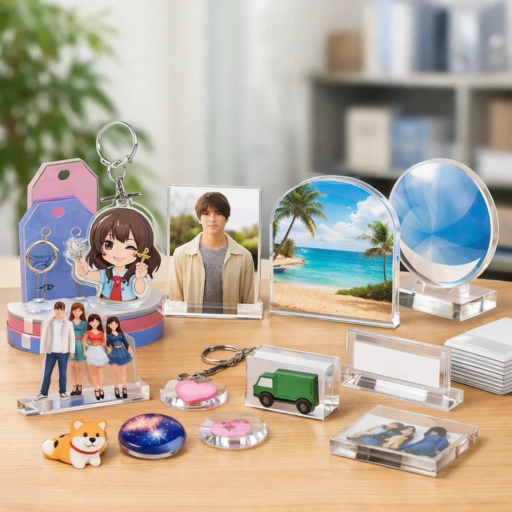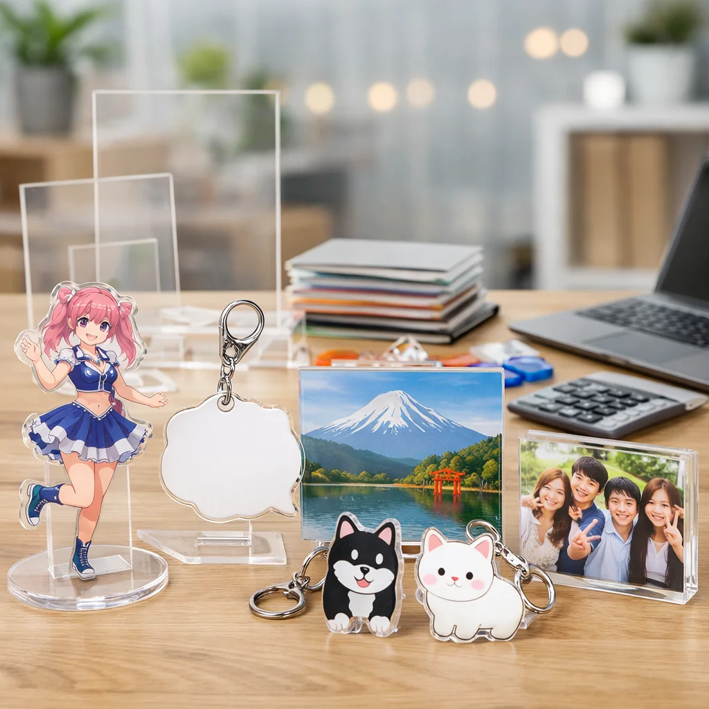 アクリルグッズは、近年、ファンたちの間で非常に人気が高まっています。その理由を探るために、アクリルグッズの用途別に、その魅力を解説します。特にアクリルキーホルダー(アクキー)、アクリルスタンド(アクスタ)、アクリルブロック(アクブロ)に焦点を当てて、透明感や発色、耐久性、小ロット対応、単価感などの要素について詳しく見ていきましょう。