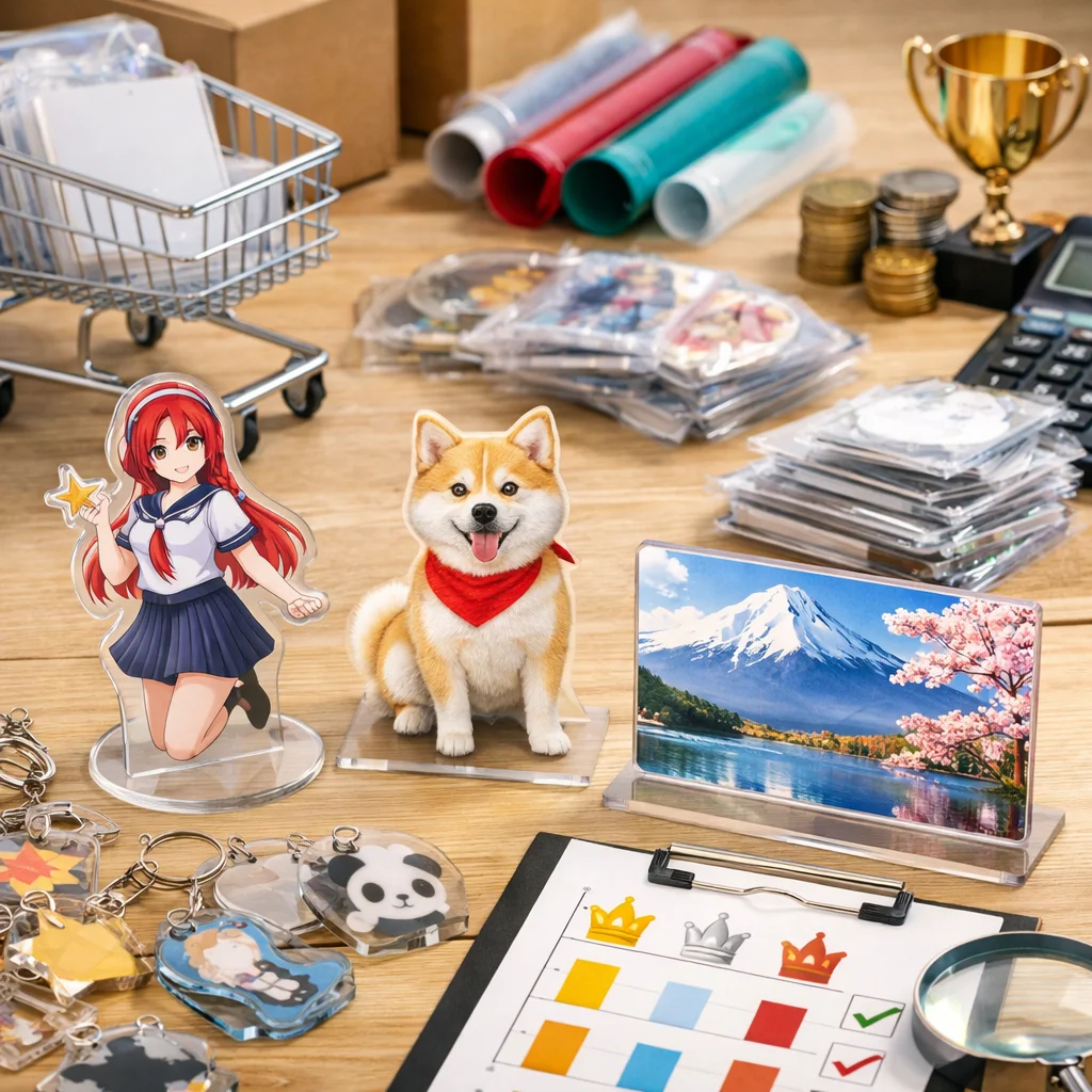 安くアクリルグッズを購入するには、目的、予算、ロット、品質、納期、サポートの6つのステップをしっかり確認することが重要です。信頼できる業者を選び、まずは小ロット試作から始めましょう。