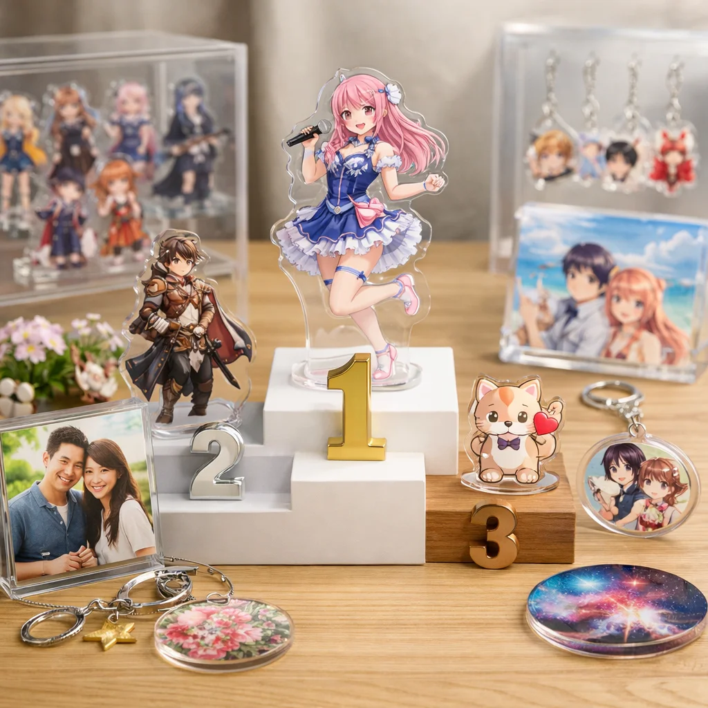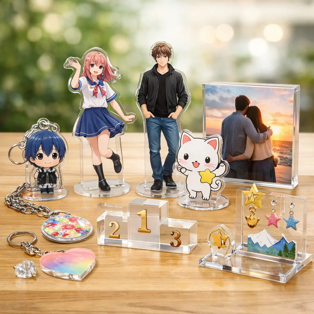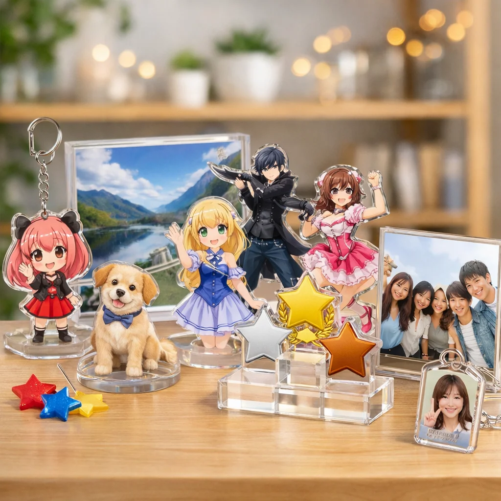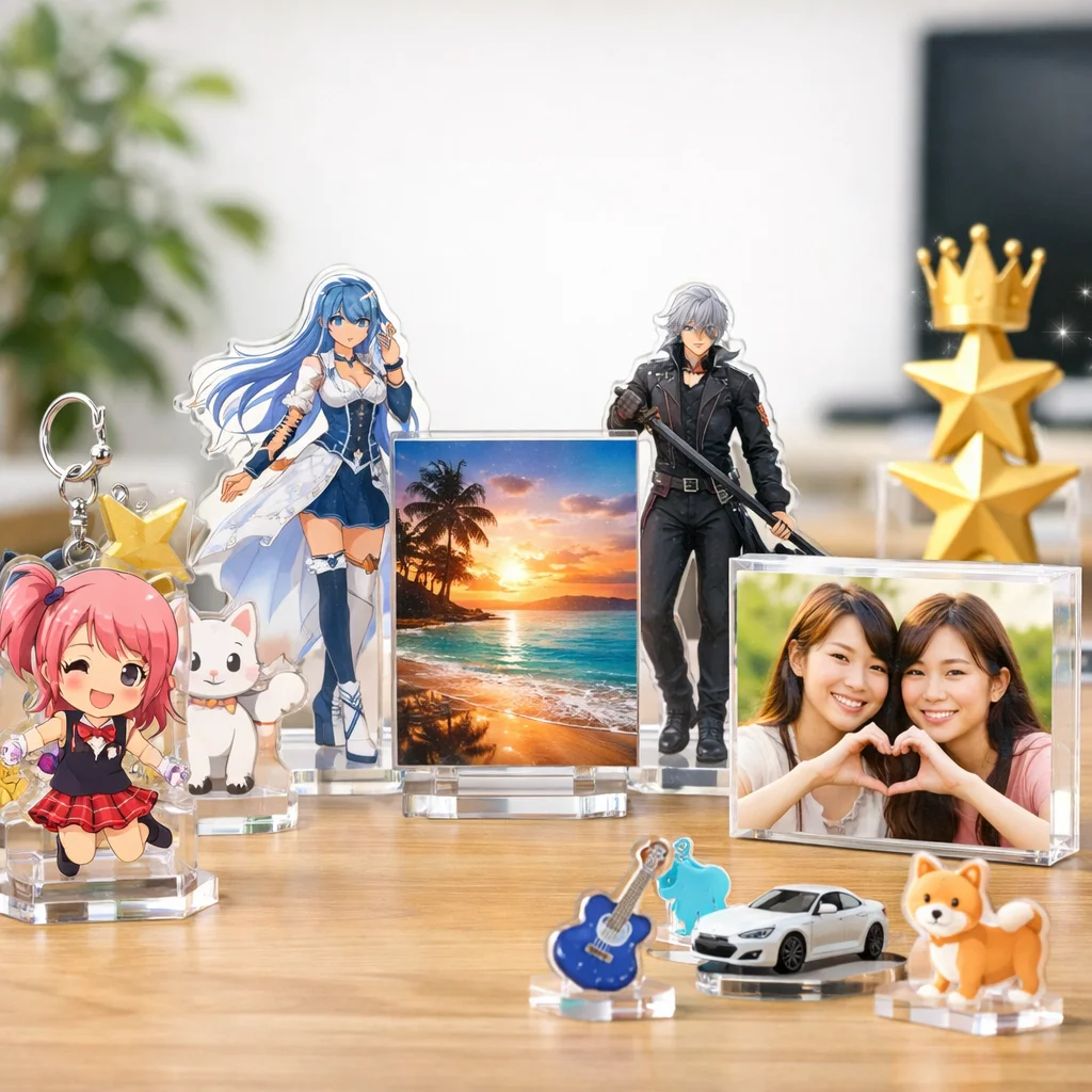 最近のアクリルグッズは、オーロラホログラムなどの新加工技術を取り入れ、見た目機能性が向上しています。評価観点としては、耐久性価格写真映えが重要です。