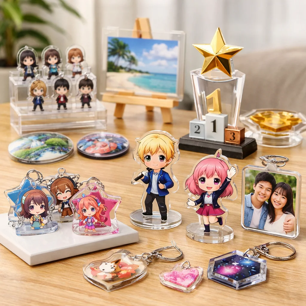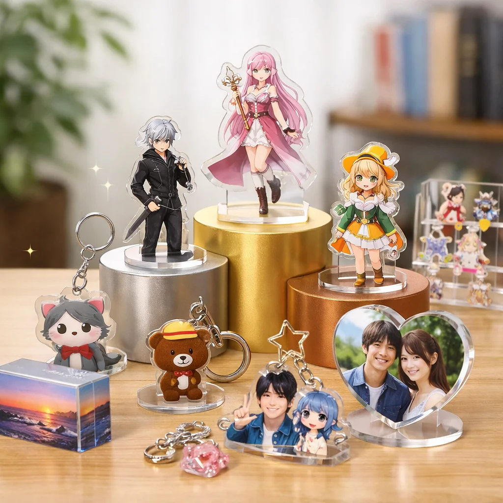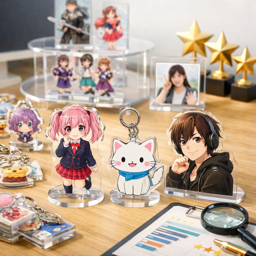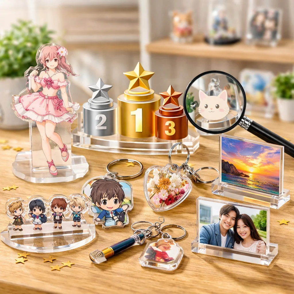 最近のアクリルグッズは、オーロラホログラムなどの新加工技術を取り入れ、見た目機能性が向上しています。評価観点としては、耐久性価格写真映えが重要です。