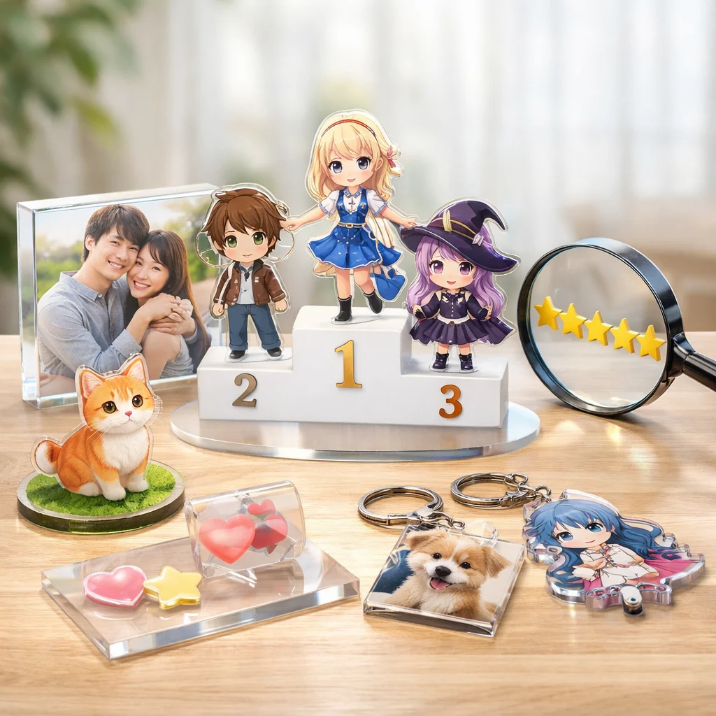次に、アクリルグッズを選ぶ際には、同じカテゴリの製品同士を比較することが重要です。同じ用な機能を持ったアクリルグッズでも、ブランドやデザイン、価格が異なれば、使ってみた際の印象も変わります。たとえば、A社のアクリルグッズが非常に人気で、デザインと価格のバランスが取れているとされる一方、B社の製品は独特のデザインが評価されています。このように、アクリルグッズ比較することで、自分のニーズに最適な商品が見つかります。