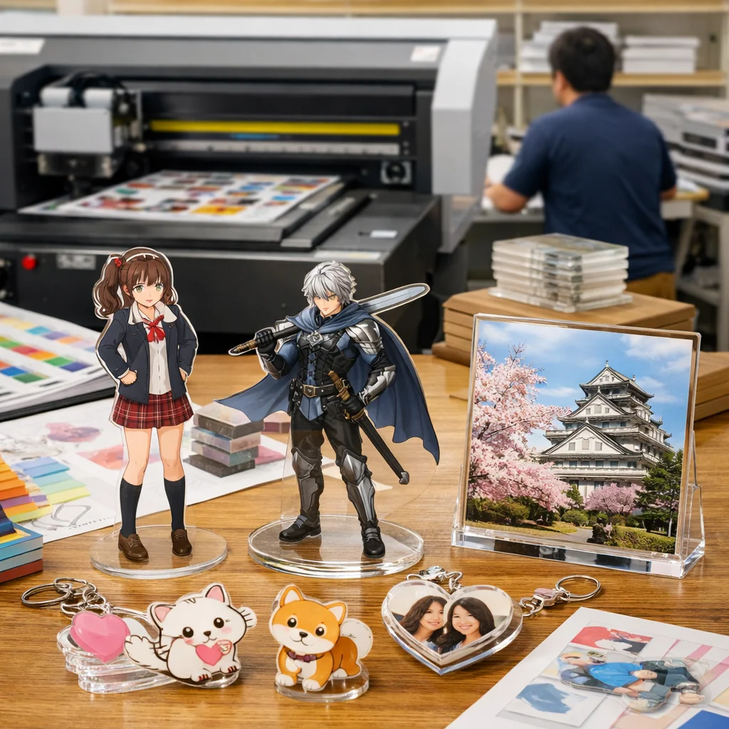 参考: 国内生産のアクスタ・アクキー・アクリルグッズ製作OEM – 株式会社新和プラスチック