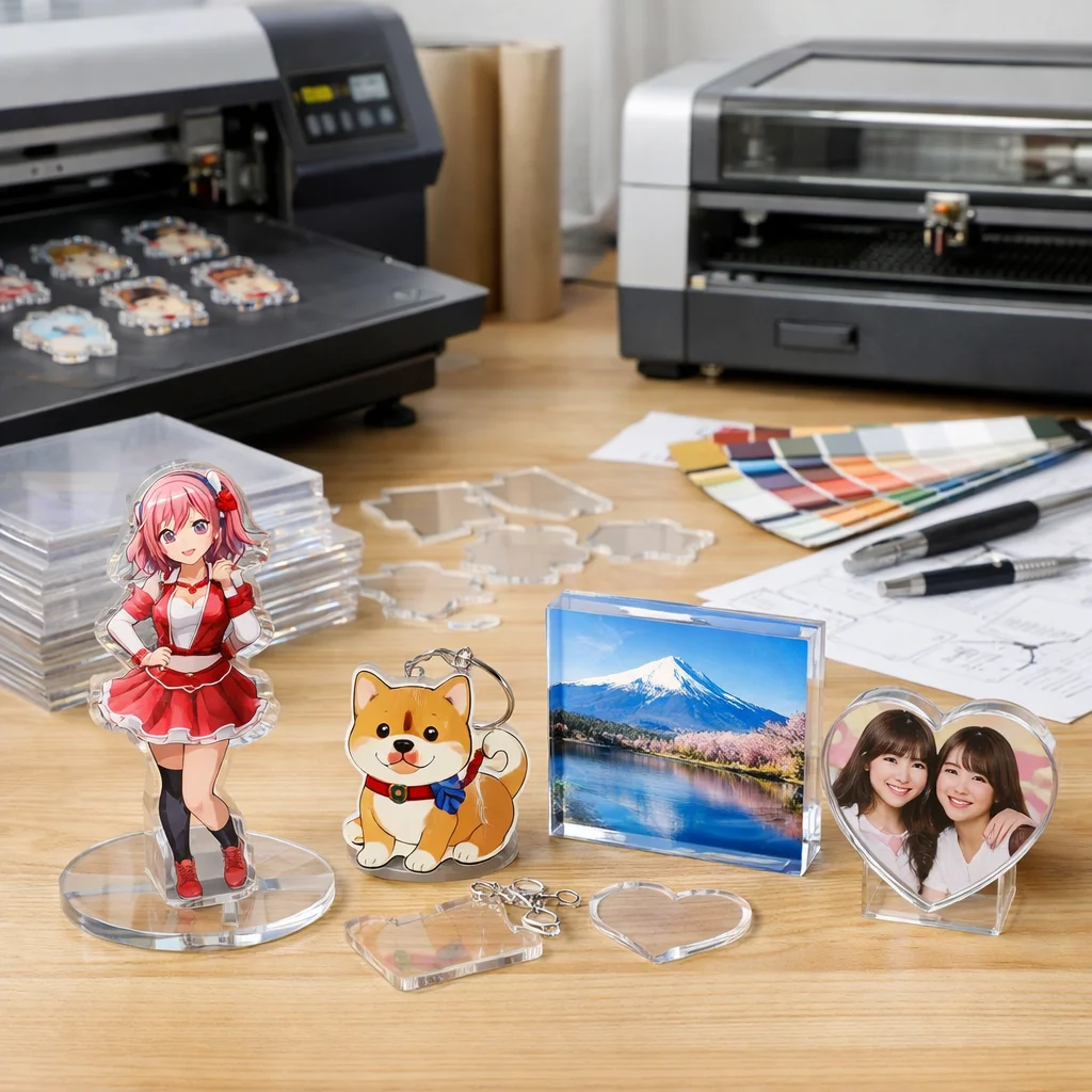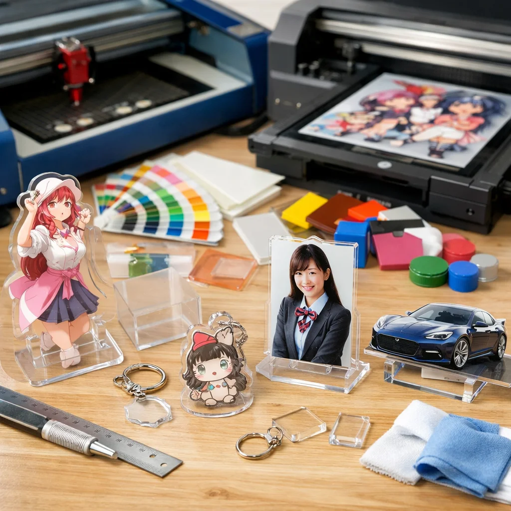 また、アクリルグッズは加工自由度が高いという特徴もあります。レーザー加工により、複雑な形状や細かいデザインの施しが可能なため、カスタマイズの選択肢が豊富です。これにより、個々のニーズにマッチした商品を制作できます。