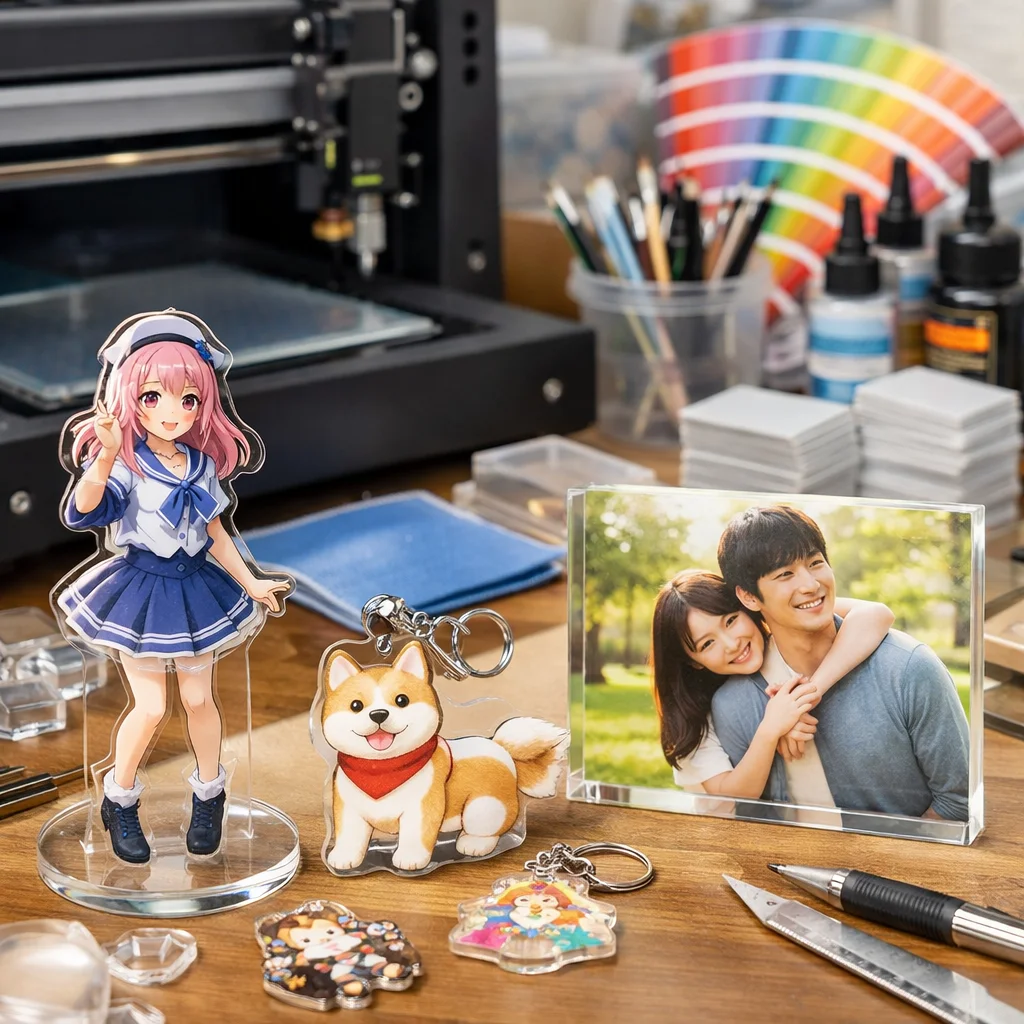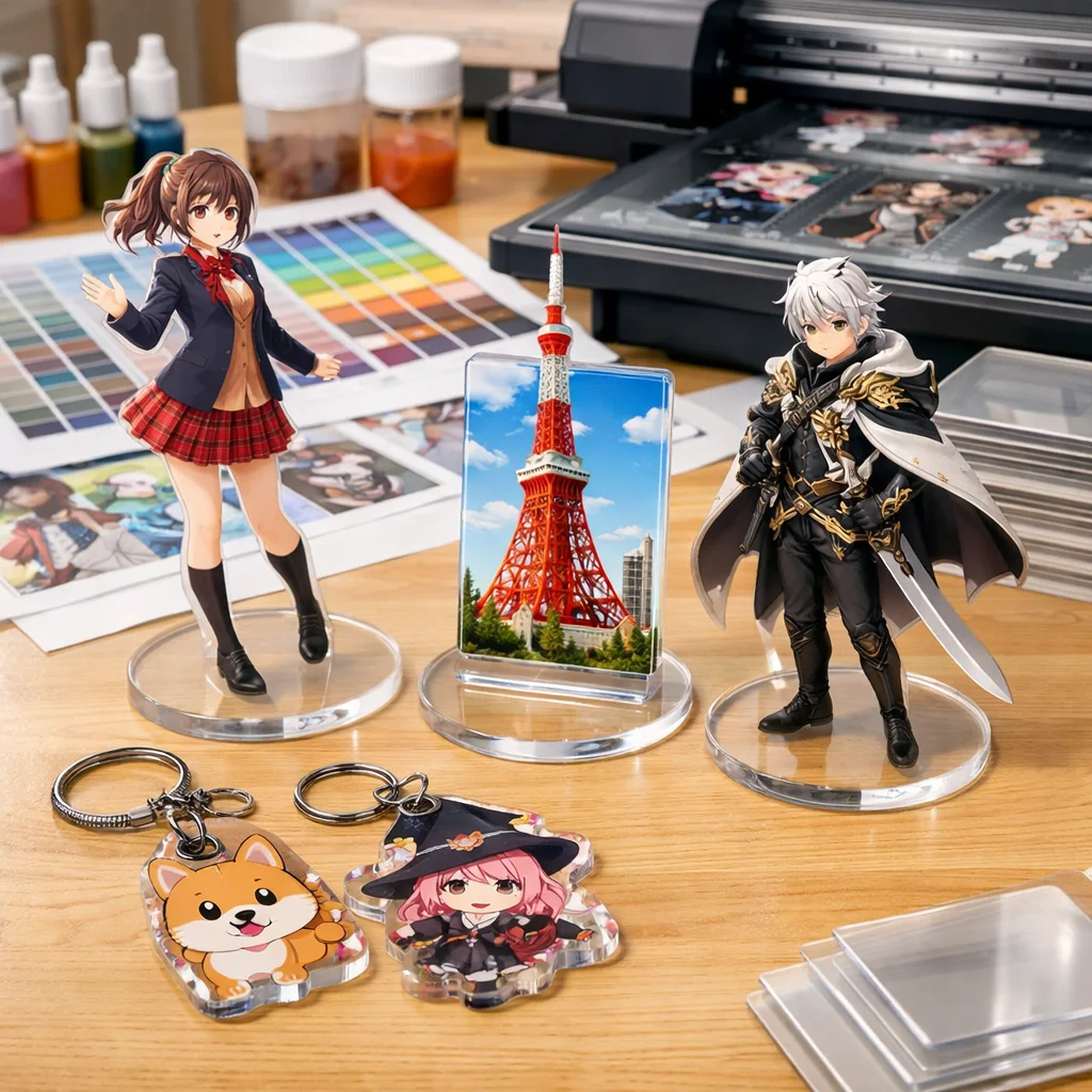 アクリルグッズの特徴は、その表現力にあります。透明感と発色の良さから、独特の美しさを持ち、さまざまなデザインに対応できます。たとえば、アクリルのプレートに鮮やかな印刷を施すことで、商品の魅力が引き立ちます。特に、イベント用や販売用のグッズとして重宝されています。