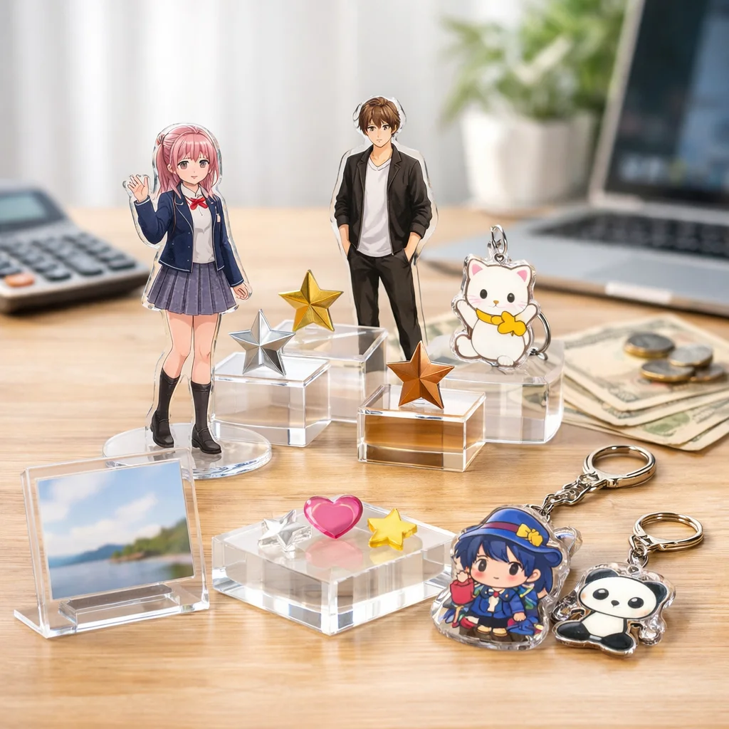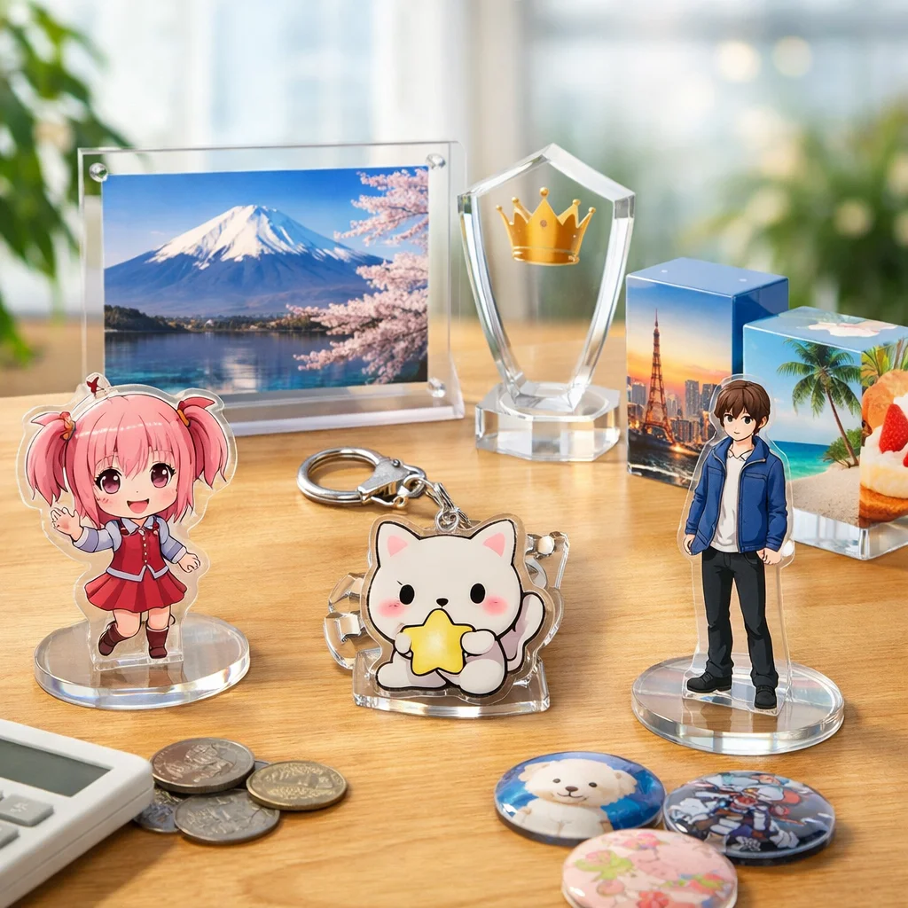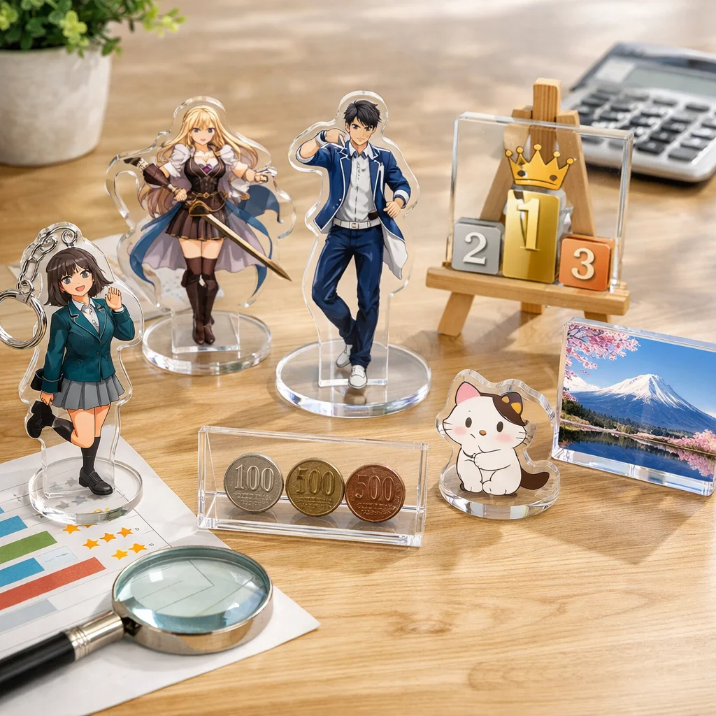 アクリルグッズの価格は、材料の種類や厚さ、加工手順、印刷方法、付属品の有無など多くの要因に影響されます。これらの要素を理解することで、より良い選択が可能となり、コストを抑えることができます。