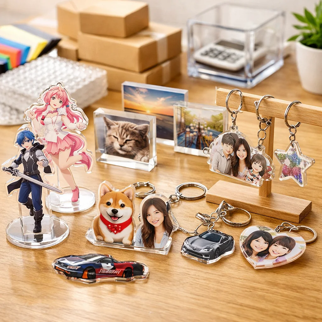 アクリルグッズの価格は、サイズやデザイン、数量によって大きく異なります。見積もりを取る際は、送料や金具、包装、校正費などの隠れたコストにも注意が必要です。また、業者によって品質やサービスに差があるため、複数の業者を比較することをおすすめします。