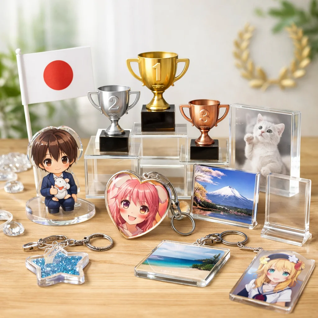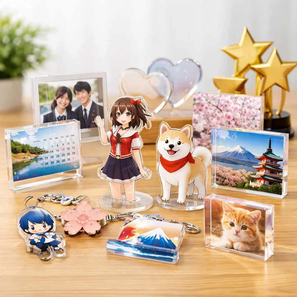 日本製のアクリルグッズは、**軽量性**、**割れにくさ**、**カスタム性**が特徴で、**イベント**や**デスク**での利用に最適です。特に、**写真映え**や**コレクション性**が高く、ギフトにもおすすめです。