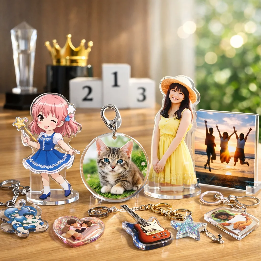 アクリルグッズは、さまざまなシーンで愛されている商品で、特に「アクリルキーホルダー(アクキー)」や「アクリルスタンド(アクスタ)」は、その存在感と手軽さから人気があります。しかし、最近ではそれだけでなく、派生商品も増えてきています。ここでは、国内におけるアクリルグッズの人気アイテムやその理由を探ってみましょう。