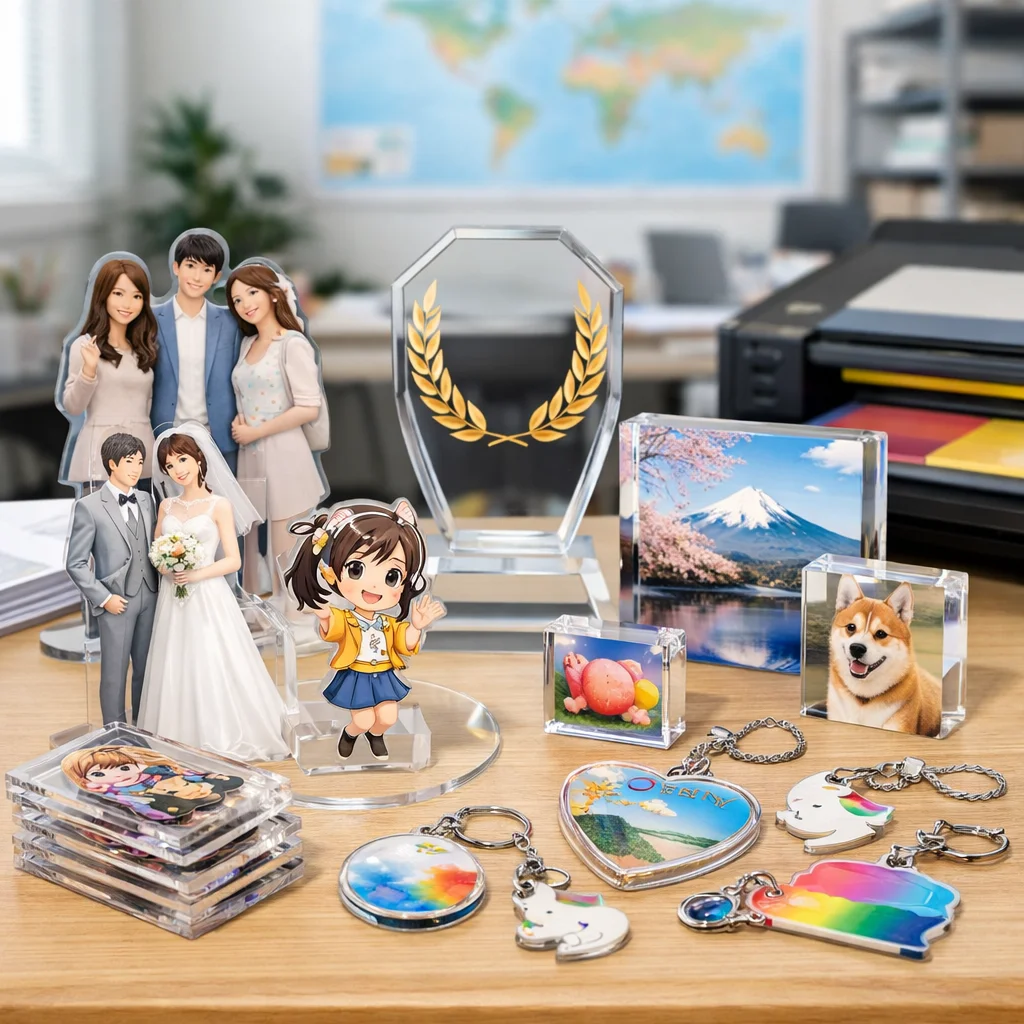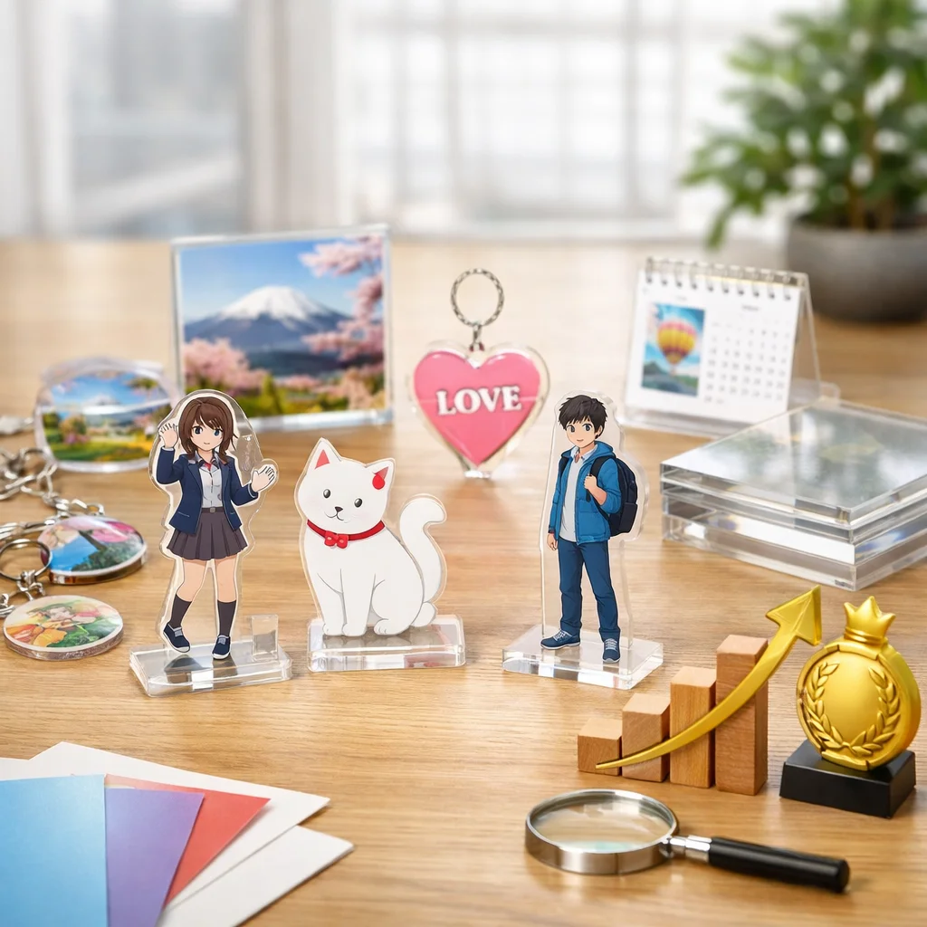 このように、国内のアクリルグッズ市場は多様なニーズに対応するために進化しており、さまざまな業者が競い合う中で新たな市場が生まれています。今後も市場の動向に注目し、それぞれのニーズに合った選択が求められることでしょう。日本国内でのアクリルグッズの可能性は計り知れず、より多くの人々に愛されるアイテムであり続けることでしょう。